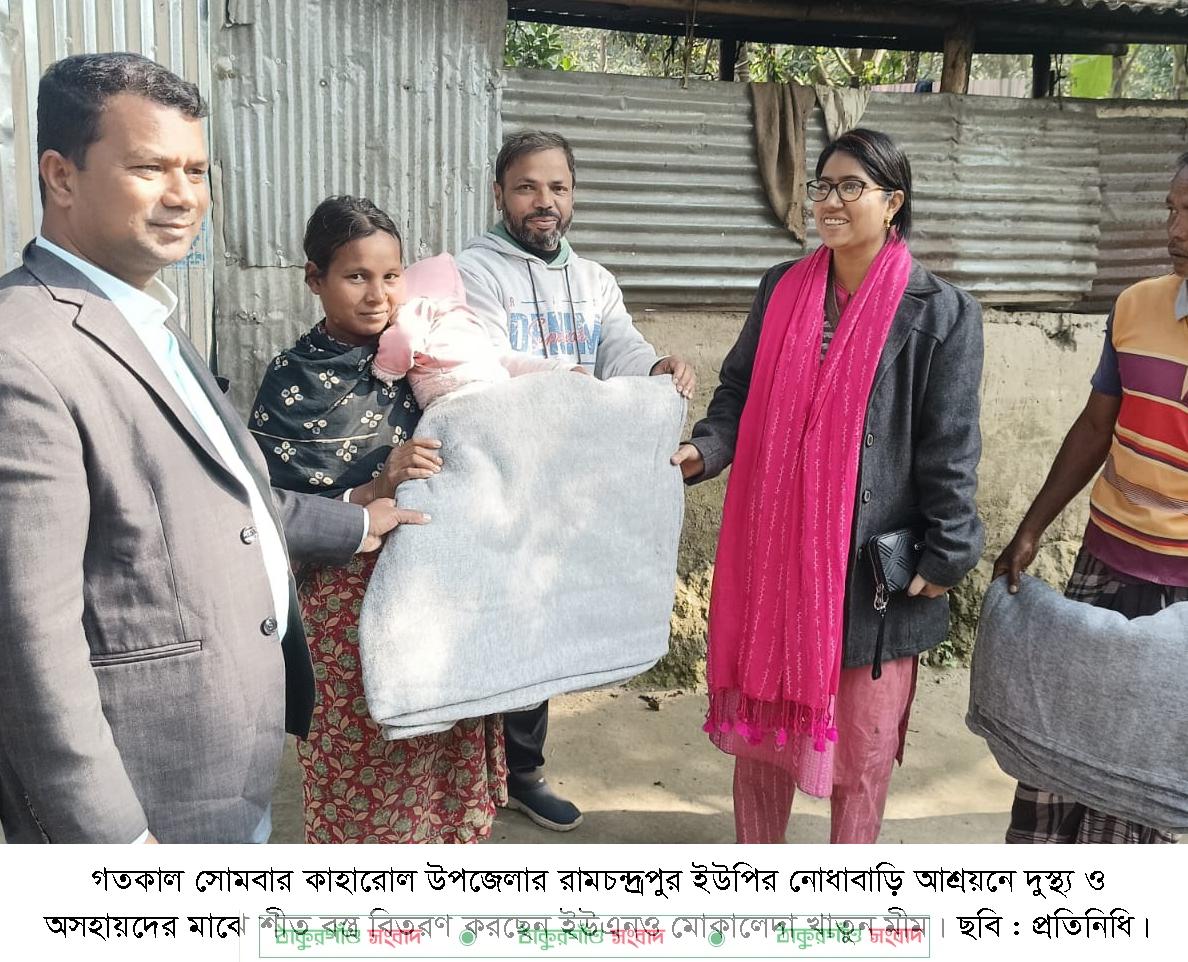কাহারোল (দিনাজপুর) প্রতিনিধিঃ দিনাজপুরের কাহারোলে দুস্থ্য ও অসহায়দের মাঝে ইউএনও’র শীত বস্ত্র বিতরণ। জানা যায়, সোমবার বেলা ১২টার দিকে উপজেলার রামচন্দ্রপুর ইউনিয়নে অবস্থিত সরকারি নোধাবাড়ী আশ্রয়ণ প্রকল্প ও একই ইউনিয়নের ঈশানপুর মৌজায় অবস্থিত সরকারি ঈশ্বর দিঘী নামক গুচ্ছ গ্রামেব সবাসরত দুস্থ্য ও অসহায় পরিবারের মাঝে শীতবস্ত্র বিতরণ করেন উপজেলা নির্বাহী অফিসারও উপজেলা পরিষদের প্রশাসক মোকলেদা খাতুন মীম। শীতবস্ত্র বিতরণের সময় উপস্থিত ছিলেন, সহকারি কমিশনার (ভুমি) প্রবীর বিশ্বাস, উপজেলা প্রকল্প বাস্তবায়ন অফিসার মোঃ আব্দুল মোত্তালেব হোসেন সরকার, ইউপি চেয়ারম্যান আলহাজ্ব মোঃ আতাউর রহমান বাবুলসহ সংশ্লিষ্ট ইউনিয়ন পরিষদের সদস্যরা।