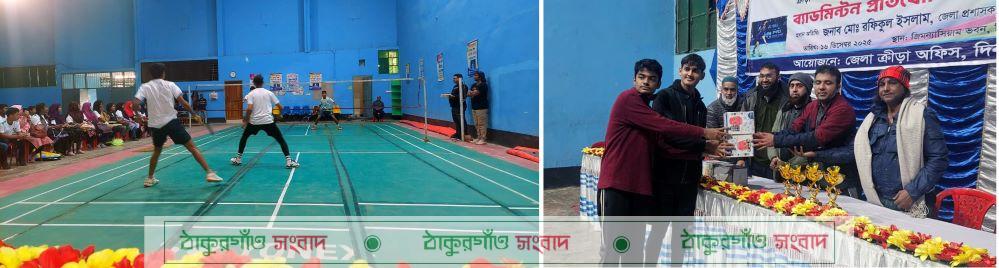 প্রায় ৫ দিনব্যাপি প্রতিযোগিতা শেষে পুরুস্কার বিতরণ করেন গণপূর্ত বিভাগ দিনাজপুরের নির্বাহী প্রকৌশলী মোঃ মনিরুজ্জামান, উপানুষ্ঠানিক শিক্ষাব্যুরো দিনাজপুরের সহকারি পরিচালক মোঃ রেজওয়ান আসিফ, দিনাজপুর ব্যাডমিন্টন ফাউন্ডেশনের ক্রীড়া সম্পাদক শাহিদ জামিল বোম্বাই ও প্রবীন খেলোয়াড় মোঃ কলিম উদ্দীন।