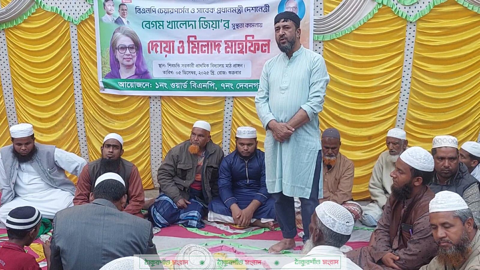 পঞ্চগড়ের তেঁতুলিয়া উপজেলার, দেবনগড় ইউনিয়নের , শিবচন্ডি প্রাথমিক বিদ্যালয় মাঠ প্রাঙ্গনে ০১ নং ওয়ার্ড বিএনপির আয়োজনে বেগম খালেদা জিয়ার সুস্থতা কামনায় উক্ত দোয়া ও মিলাদ মাহফিল অনুষ্ঠিত হয়।