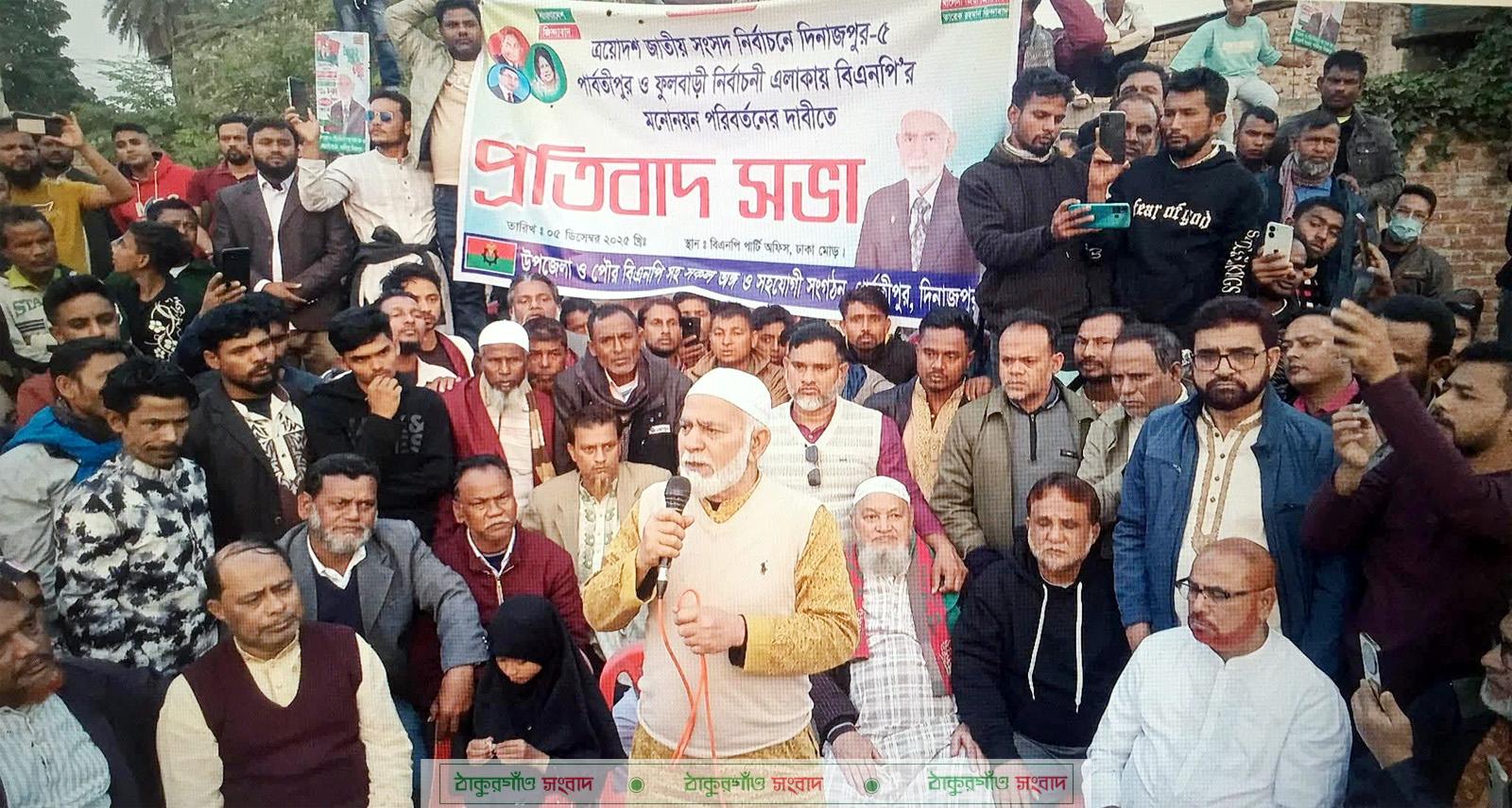 দিনাজপুরের পার্বতীপুর বিএনপি নেতা এ জেড এম রেজওয়ানুল হককে মনোনয়ন না দেওয়ায় উপজেলা বিএনপির ডাকে এক প্রতিবাদ সভা অনুষ্ঠিত হয়েছে।