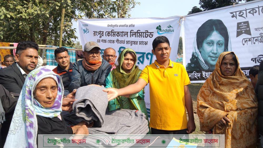 দেশনেত্রী বেগম খালেদা জিয়ার মৃত্যুতে জাতীয় শোক দিবসে পঞ্চগড়ে শীতার্ত মানুষের মাঝে শীতবস্ত্র বিতরণ করা হয়েছে। বুধবার দুপুরে পঞ্চগড় জেলা সদরের সদর ইউনিয়নের বলেয়াপাড়া গ্রামে ওই শীতবস্ত্র বিতরণ করে রংপুর কেমিক্যাল রিমিটেড। শীতবস্ত্র বিতরণ করার আগে বেগম খালেদা জিয়ার মৃত্যুতে এক মিনিট নিরবতা পালন করা হয়। শীতবস্ত্র বিতরণ অনুষ্ঠানে স্বাগত বক্তব্য দেন রংপুর কেমিক্যাল লিমিটেডের চেয়ারম্যান নাহিদ ইয়াসমিন প্রধান। এ সময় এলাকার গণ্যমান্য ব্যাক্তিবর্গ উপস্থিত ছিলেন। শীতবস্ত্র বিতরণ অনুষ্ঠানে পাঁচ শতাধিক দরিদ্র ও অসহায় শীতার্ত মানুষের মাঝে শীতবস্ত্র হিসেবে কম্বল বিতরণ করা হয়।