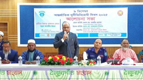 মোঃ শামসুল আলম, বোচাগঞ্জ (দিনাজপুর) প্রতিনিধি \ দিনাজপুরের বোচাগঞ্জে (৯ডিসেম্বর) মঙ্গলবার“ দুর্ণীতির বিরুদ্ধে তারুণ্যের একতা, গড়বে অগামীর শুদ্ধতা” এই প্রতিপাদ্য বিষয়কে সামনে রেখে বিভিন্ন কর্মসূচীর মধ্যে দিয়ে আন্তর্জাতিক দুর্ণীতি বিরোধী দিবস ২০২৫ পালন করা হয়েছে। সকাল ১০টায় উপজেলা ক্যাম্পাসে জাতীয় সংগীত এবং জাতীয় ও দুর্নীতি প্রতিরোধ এর পতাকা উত্তোলনের মাধ্যমে দিবসের সূচনা করা হয়। এর পর বেলুন উড়িয়ে দিবসের উদ্বোধন করেন উপজেলা নির্বাহী অফিসার। উদ্বোধন শেষে উপজেলা ক্যাম্পাসে জনসচেতনতা মুলক রেলি ও মানববন্ধন করার পর উপজেলা সভাকক্ষে উপজেলা দুর্নীতি প্রতিরোধ কমিটির সভাপতি ও সেতাবগঞ্জ প্রেস ক্লাবের আহবায়ক আব্দুস সাত্তার এর সভাপতিত্বে অনুষ্ঠিত আলোচনা সভায় প্রধান অতিথির বক্তব্য রাখেন উপজেলা নির্বাহী অফিসার মোঃ মারুফ হাসান।