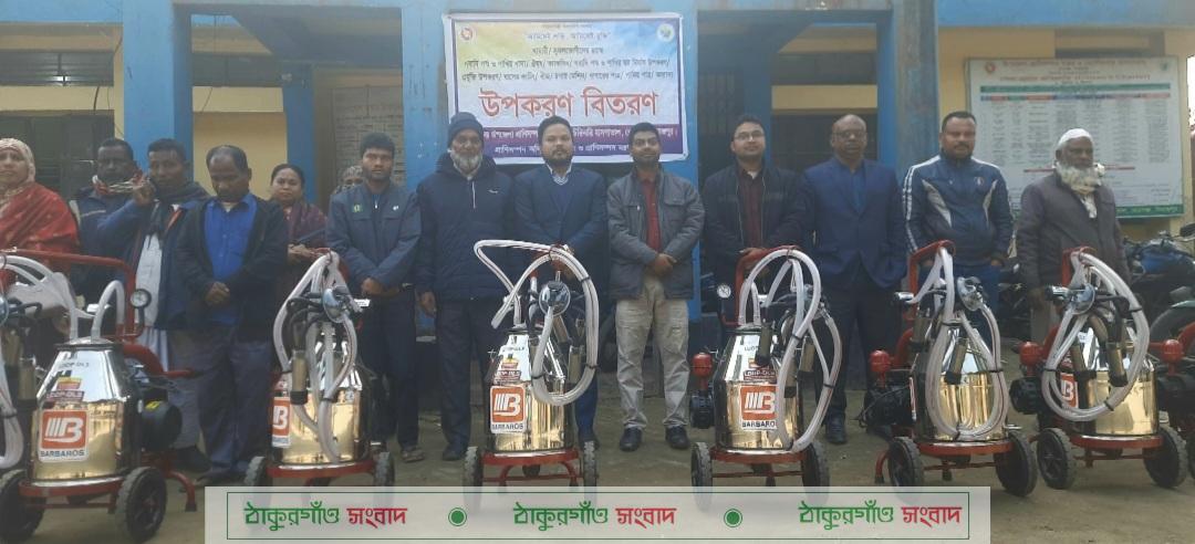 দিনাজপুরের বোচাগঞ্জ উপজেলার গাভী খামারিদের আধুনিকায়নের লক্ষ্যে (২১ডিসেম্বর) রবিবার দুপুরে প্রাণিসম্পদ ও ডেইরি উন্নয়ন প্রকল্পের আওতায় উপজেলার ১০জন গাভী খামারির মাঝে ১০টি মিল্কিং মেশিন বিতরণ করেছে উপজেলা প্রাণিসম্পদ অধিদপ্তর। মিল্কিং মেশিন বিতরণ কালে উপজেলা প্রাণিসম্পদ কর্মকর্তা ডাঃ আবু কায়েস বিন আজিজ বলেন, খামারগুলোকে আরো আধুনিকায়ন করার জন্য আজকে আমরা প্রাণী সম্পদ ও ডেইরি উন্নয়ন প্রকল্পের আওতায় উপজেলার ১০টি খামারির মাঝে মিল্কিং মেশিন বিতরণ করেছি। মেশিনের মাধ্যমে দুধ দোয়ানো দেখে গ্রামের অন্যান্য খামারিরা যাতে আধুনিক প্রযুক্তি ব্যবহার করে সহজে বৈজ্ঞানিকভাবে হাইজেনিক ব্যবস্থাপনা করতে পারে। এই লক্ষ্য উদ্দেশ্য নিয়ে আজকে আমরা এই মিল্কিং মেশিন বিতরণ করলাম। আশা করি খামারিরা এর যথাযথ ব্যবহার করবে।