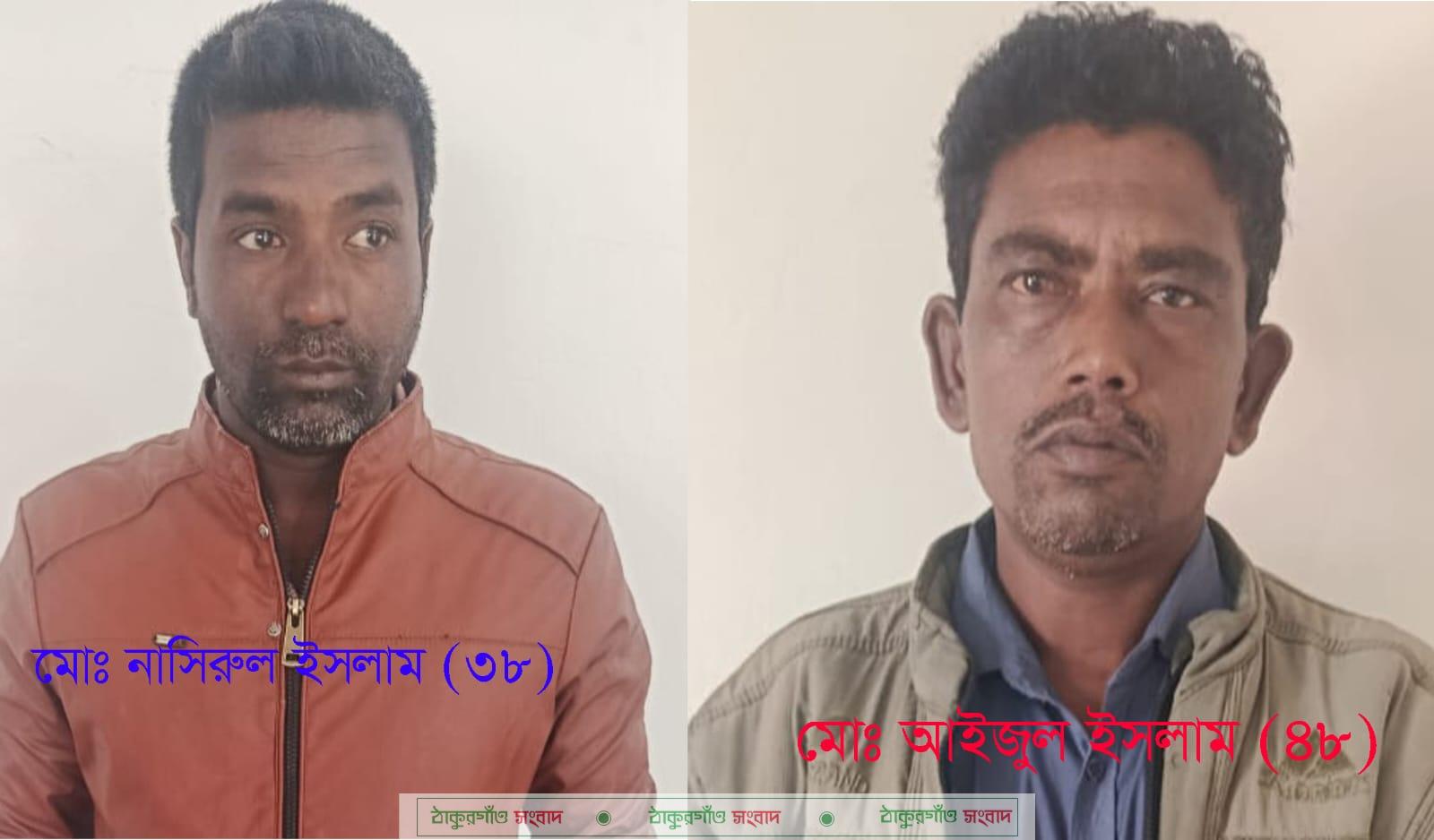 মোঃ শামসুল আলম, বোচাগঞ্জ (দিনাজপুর) উপজেলঅ সংবাদদাতা\ দিনাজপুরের বোচাগঞ্জে (১৫ডিসেম্বর) সোমবার দিবাগত রাতে গরু চোর সন্দেহে দুই জনকে আটক করে জেল হাজতে প্রেরণ করেছে পুলিশ। মামলা সুত্রে জানাগেছে, গত (১৪ডিসেম্বর) রবিবার দিবাগত গভীর রাতে উপজেলার দকচাই গ্রামের মন্নাফ এর বাড়ী থেকে কালো রং এর একটি ফ্রিজিয়ান গরু চুরি হয়। যার আনুমানিক মূল্য ১লাখ ৫০হাজার টাকা। এ বিষয়ে মন্নাফ গত ১৫ডিসেম্বর থানায় অজ্ঞাত নামা ব্যাক্তিদের বিরুদ্ধে গরু চুরি বিষয়ে একটি মামলা করে। যার মামলা নং-৯। মামলা দেয়ার পর। বোচাগঞ্জ থানার অফিসার ইনচার্জ মোঃ মিজানুর রহমান এর নির্দেশে মামলার আই ও এসআই মহুরার রহমান তথ্যপ্রযুক্তি ব্যবহার করে সাক্ষ্য প্রমাণের ভিত্তিতে ঐরাতেই মহেশালই বাজার থেকে মোঃ আইজুল ইসলাম (৪৮) ও সেতাবগঞ্জ বাজার থেকে মোঃ নাসিরুল ইসলাম (৩৮)কে আটক করে থানায় নিয়ে আসে। আটককৃত নাসিরুল ইসলাম উপজেলার ১নং-নাফানগর ইউনিয়নের ছোট সুলতানপুর গ্রামের বসবাসকারী জবাইদুর রহমান এর পুত্র এবং আইজুল ইসলাম ২নং-ইশানিয়া ইউনিয়নের শংকর ডাঙ্গী গ্রামের বসবাসকারী মৃত মাহাতাব উদ্দীনের পুত্র। আটককৃত দুইজনকে মন্নাফ এর করা মামলায় গ্রেফতার দেখানো হয়েছে।