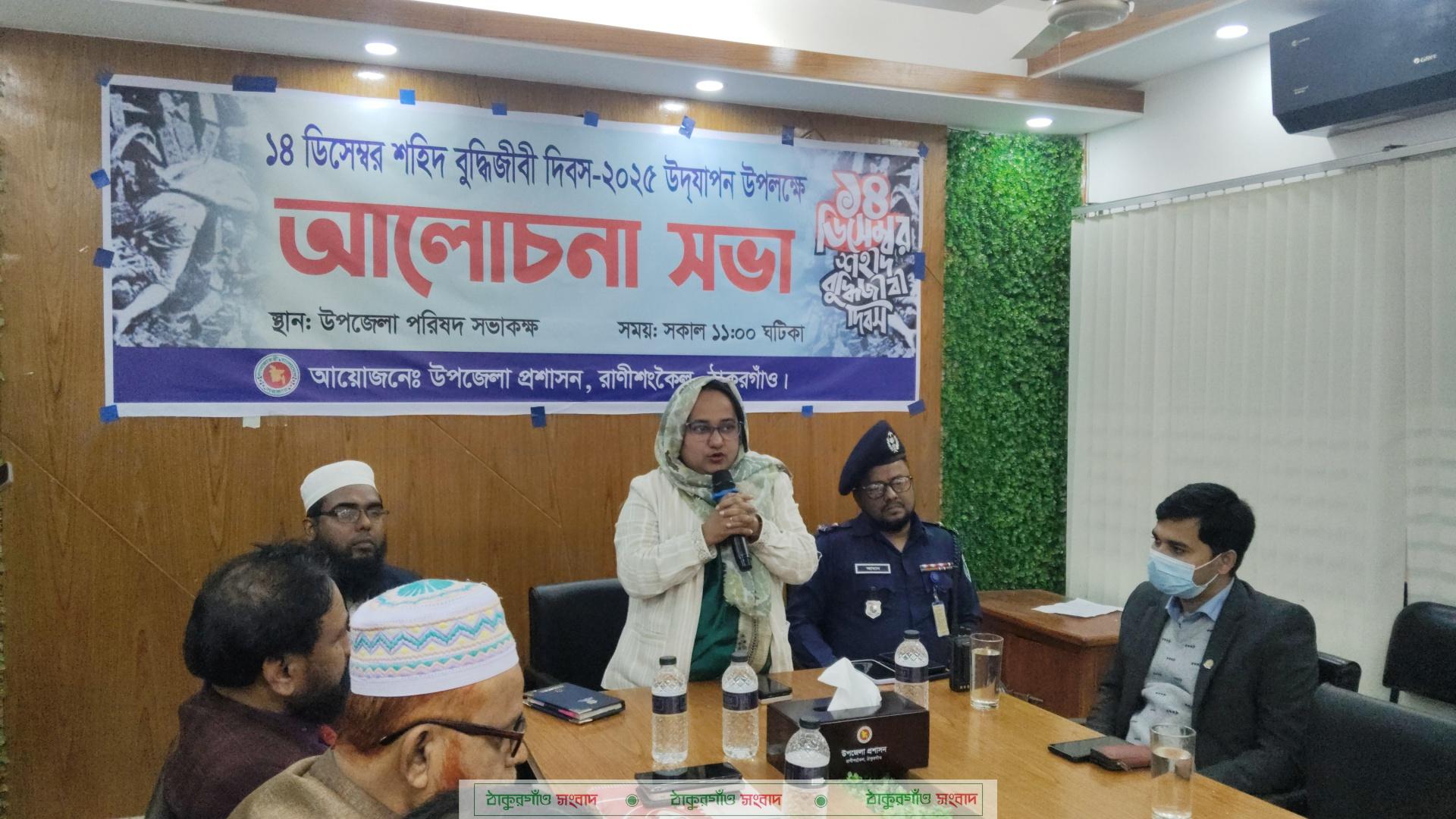 রাণীশংকৈল (ঠাকুরগাঁও) প্রতিনিধি: শহীদ বুদ্ধিজীবী দিবস উপলক্ষে ঠাকুরগাঁওয়ের রাণীশংকৈলে পুষ্পমাল্য অর্পণ, আলোচনা ও দোয়া মাহফিল অনুষ্ঠিত হয়।