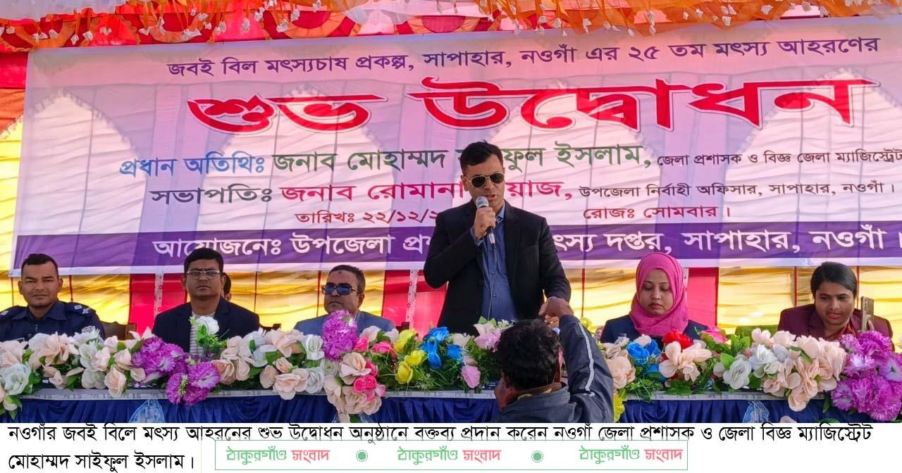 সাপাহার উপজেলা নির্বাহী অফিসার রোমানা রিয়াজ এর সভাপতিত্বে অনুষ্ঠিত উদ্বোধনী অনুষ্ঠানে উপজেলা মৎস্য কর্মকর্তা (অতিরিক্ত দায়িত্বে) রোজিনা পারভিন জানান- গত বছরের তুলনায় এবারে মাছের সংখ্যা ও ওজন অনেকটাই বৃদ্ধি পেয়েছে; এবারে এই বিল হতে আনুমানিক (৭শ’ মেট্রিকটন) ৭ লক্ষ ৫০হাজার কেজি মাছ; যার আনুমানিক মূল্য ৩০ কোটি ৭৫ লক্ষ টাকার মৎস্য আহরণ হতে পারে বলে আমরা আশা করছি।