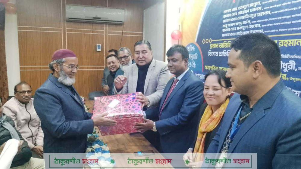 পঞ্চগড়ের আটোয়ারী স্বাস্থ্য কমপ্লেক্সের ৬ কর্মচারীকে অবসর জনিত বিদায় সংবর্ধনা দেওয়া হয়েছে। উপজেলা স্বাস্থ্য কমপ্লেক্সের আয়োজনে মঙ্গলবার (৬জানুয়ারি) বিকেলে স্বাস্থ্য কমপ্লেক্সের হলরুমে উক্ত বিদায় সংবর্ধনা অনুষ্ঠিত হয়। উপজেলা স্বাস্থ্য ও প: প: কর্মকর্তা ডাঃ মোঃ হুমায়ুন কবীর এর সভাপতিত্বে আয়োজিত বিদায় সংবর্ধনা অনুষ্ঠানে প্রধান অতিথি হিসেবে উপস্থিত ছিলেন পঞ্চগড়ের সিভিল সার্জন ডাঃ মোঃ মিজানুর রহমান। অনুষ্ঠানে বিশেষ অতিথি হিসেবে উপস্থিত ছিলেন চৌকস আটোয়ারী উপজেলা নির্বাহী অফিসার রিপামনি দেবী এবং স্বাস্থ্য অধিদপ্তর, মহাখালী’র সাবেক উপ-পরিচালক সবার প্রিয় ডাক্তার মওলা বক্স চৌধুরী। অবসর জনিত বিদায় নেওয়া কর্মচারীরা হলেন যথাক্রমে সাবেক স্টোর কিপার মোঃ আব্দুল মান্নান, সাবেক সহকারী স্বাস্থ্য পরিদর্শক মোঃ মোস্তফা আলম, সাবেক স্যানেটারী ইনস্পেক্টর মোঃ মোস্তাফিজুর রহমান, সাবেক পরিসংখ্যানবিদ বাবু ধনেশ চন্দ্র বর্মন, সাবেক ক্যাশিয়ার মোঃ মকবুল হোসেন এবং সাবেক ওয়ার্ড বয় মোঃ জহিরুল ইসলাম। বিদায় অনুষ্ঠানে অবসর নেওয়া প্রত্যেক কর্মচারীগণের পাশাপাশি আরো বক্তব্য রাখেন সাবেক এমটি ইপিআই কর্মী মোঃ ইদ্রীস আলী, সাবেক ক্যাশিয়ার মোঃ নুরল হক, সিএইচসিপি নির্মল কুমার বর্মন, স্বাস্থ্য কর্মী মোছা: নাসরিন, সিসটার মোছা: লাকী বেগম, স্বাস্থ্য পরিদর্শক মোছাঃ সুফিয়া খাতুন। পরিশেষে বিদায়ী সহকর্মীদের উপজেলা স্বাস্থ্য কমপ্লেক্স পরিবারের পক্ষে এবং সবার প্রিয় ডাক্তার মওলা বক্স চৌধুরীর ব্যক্তিগত পক্ষ হতে উপহার সামগ্রী প্রদান করে অনুষ্ঠানের ইতি টানা হয়।