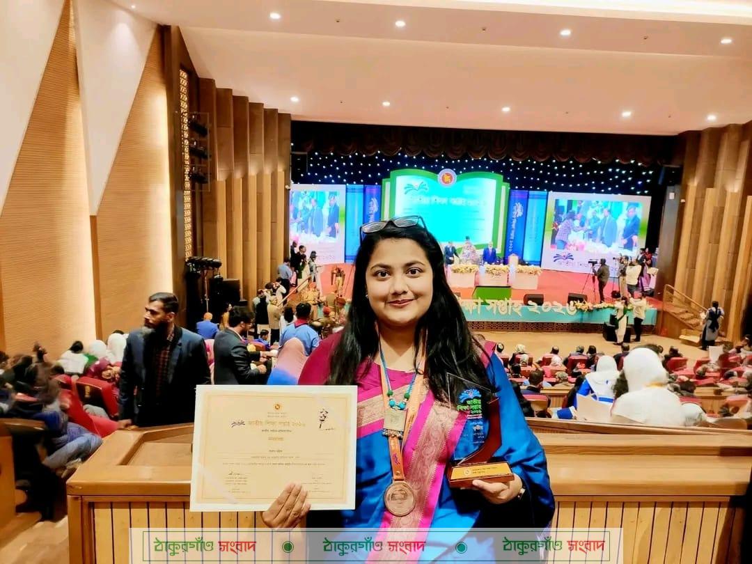 জাতীয় শিক্ষা সপ্তাহ-২০২৬ এর জাতীয় পর্যায়ের প্রতিযোগিতায় ঘ বিভাগের আবৃত্তিতে ৩য় স্থান অধিকার করে গৌরব বয়ে এনেছেন ঠাকুরগাঁওয়ের পীরগঞ্জ উপজেলার কৃতি সন্তান লাবণ্য মল্লিক। তার এই সাফল্যে পীরগঞ্জ তথা পুরো জেলায় আনন্দের আমেজ বিরাজ করছে।