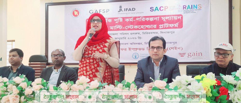 চিরিরবন্দর (দিনাজপুর) প্রতিনিধি: দিনাজপুরের চিরিরবন্দরে অর্ধ-বার্ষিক পুষ্টি কর্ম-পরিকল্পনা ইউনিয়ন মাল্টি-স্টোকহোল্ডার প্লাটফর্মের কর্মশালা অনুষ্ঠিত হয়েছে। গতকাল ২১ জানুয়ারি বুধবার সকাল ১০টায় উপজেলা পরিষদ হলরুমে উপজেলা কৃষি সম্প্রসারণ অধিদপ্তরের গ্লোবাল অ্যালায়েন্স ফর ইমপ্রুভড নিউট্রিশন (গেইন)’র ইউনিয়ন মাল্টিহোল্ডার প্লাটফর্ম এ অর্ধ-বার্ষিক পুষ্টি কর্মপরিকল্পনা কর্মশালার আয়োজন করে।