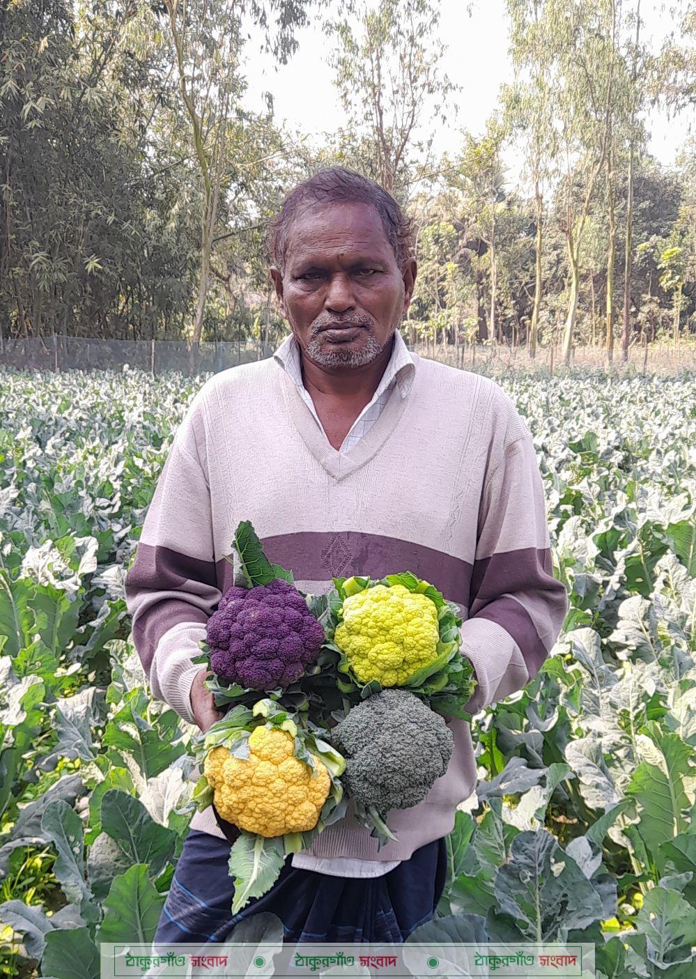 কৃষক মতিয়ার রহমান জানান, টিভিতে রঙিন কপির ছবি দেখে তা চাষের প্রতি আমার আগ্রহ সৃষ্টি হয়। এ জন্য আমি প্রথম বছর দিনাজপুর, বীরগঞ্জ, সৈয়দপুর, রংপুরসহ বিভিন্ন জায়গায় রঙিন কপির বীজ কিংবা চারার জন্য হন্যে হয়ে ঘুরেছি। কিন্তু রঙিন কপির বীজ বা চারার সন্ধান কোথাও পাইনি। এক পর্যায়ে সিনজেন্টা কোম্পানীর জনৈক প্রতিনিধি প্যাকেট ছাড়াই বেগুনি রঙের ভেলেনটিনা ও কমলা রঙের কেরটিনা জাতের রঙির কপির বীজ সরবরাহ করেন। আমি এসব বীজের চারাসহ ব্রুকলি, ফুলকপির চারা করে আবাদ করি। এরপর আর পিছনে ফিরে তাকাতে হয়নি। চলতি বছরও আমি উপজেলা কৃষি অফিসের সহযোগিতায় দেশি জাতের কপিবাদে ৪০ শতক জমিতে বেগুনি, কমলা, খয়েরী রঙের কপি ও ব্রুকলি এবং ১৫ শতক জমিগে স্কোয়াশ চাষ করেছি। এতে আমার খরচ হয়েছে অন্তত ২০ হাজার টাকা।