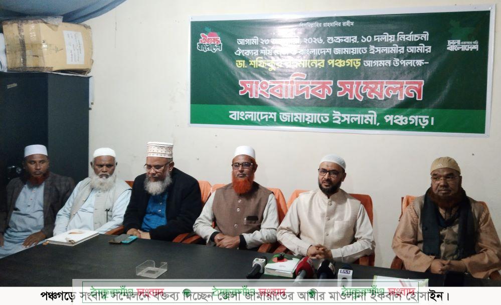 গতকাল বুধবার দুপুরে পঞ্চগড় জেলা জামায়াতে ইসলামীর অফিসে ওই সংবাদ সম্মেলন অনুষ্ঠিত হয়। সংবাদ সম্মেলনে জেলা আমীর বলেন, আগামী ২৩ জানুয়ারী শুক্রবার সকালে পঞ্চগড়ের ১ ও ২ আসনে নির্বাচনে নির্বাচনী প্রচারণা শুরু করবেন কেন্দ্রীয় আমীর ডা. শফিকুর রহমান। সেখানে দলীয় ও জোটের শরীক প্রার্থীর পক্ষে ভোট চাইবেন তিনি। জনসভায় কেন্দ্রীয় জামায়াতের নেতৃবৃন্দগণ ছাড়াও শরীক দলের প্রার্থী ও তাদের জেলা-উপজেলার নেতৃবৃন্দগণ উপস্থিত থাকবেন।