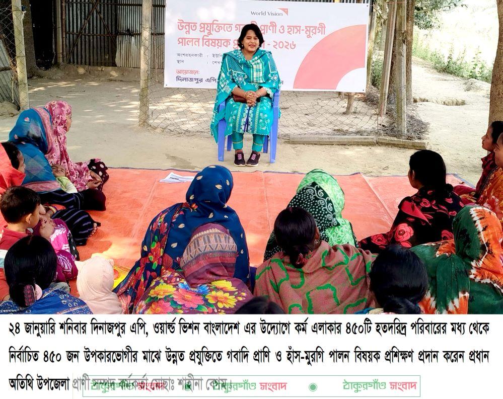 শনিবার দিনাজপুর এপি, ওয়ার্ল্ড ভিশন বাংলাদেশ এর উদ্যোগে কর্ম এলাকার ৪৫০টি হতদরিদ্র পরিবারের মধ্য থেকে নির্বাচিত ৪৫০জন উপকারভোগীর মাঝে উন্নত প্রযুক্তিতে গবাদি প্রাণি ও হাঁস-মুরগি পালন বিষয়ক প্রশিক্ষণ কার্যক্রম শুরু হয়েছে।এই প্রশিক্ষণের মূল লক্ষ্য হলো অংশগ্রহণকারীদের দক্ষতা বৃদ্ধি করে টেকসই জীবিকায়নে সক্ষম করে তোলা।