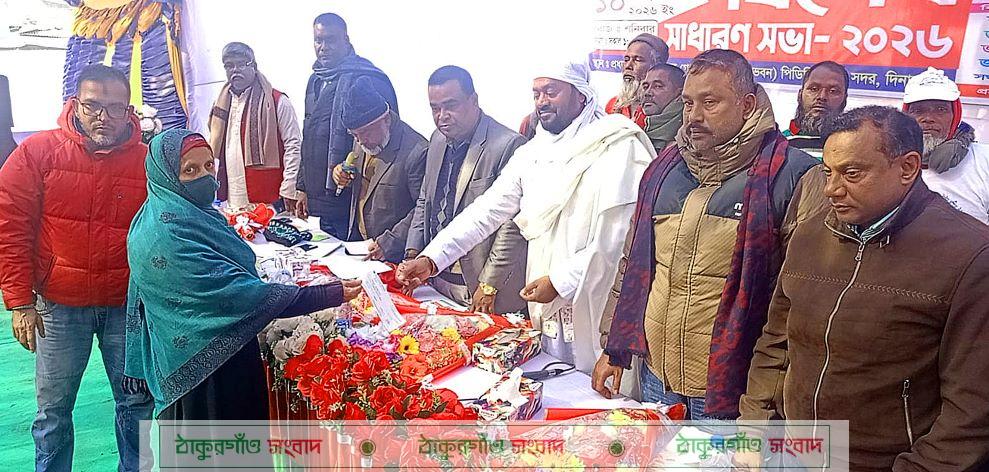 দিনাজপুর জেলা ট্রাক ট্যাংকলরী, কাভার্ডভ্যান ও ট্রাক্টর শ্রমিক ইউনিয়ন (রেজি নং রাজ-২৪৫) এর বিশেষ সাধারণ সভা অনুষ্ঠিত হয়েছে। সভায় মৃত ও পঙ্গু শ্রমিকসহ শ্রমিক পরিবারের মেয়েদের বিবাহের জন্য মোট ১৯ লাখ ৩০ হাজার টাকার এককালীন অনুদানের চেক বিতরণ করা হয়। একই সঙ্গে আসন্ন ত্রয়োদশ জাতীয় সংসদ নির্বাচনকে সামনে রেখে সংগঠনের ‘ত্রি-বার্ষিক নির্বাচন-২০২৬’ পেছানোর সিদ্ধান্ত গৃহীত হয়।