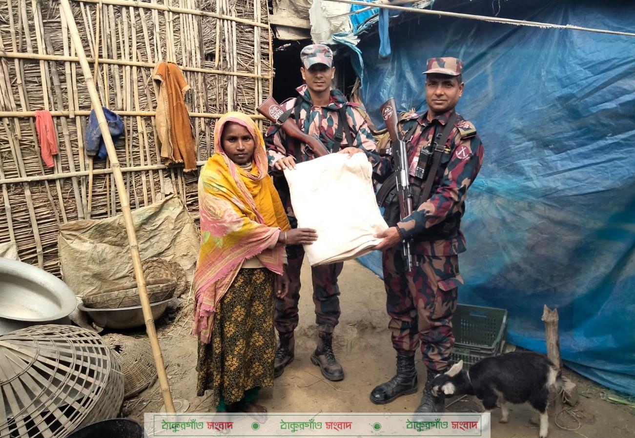 এরই ধারাবাহিকতায় চলমান তীব্র শীতে মানবিক সহায়তার অংশ হিসেবে দিনাজপুর ব্যাটালিয়ন (৪২বিজিবি) কর্তৃক দিনাজপুর (বিরল ও বোচাগঞ্জ উপজেলা) এবং ঠাকুরগাঁও (পীরগঞ্জ, রাণীশংকৈল ও হরিপুর উপজেলা) জেলার সীমান্তবর্তী এলাকা এবং দিনাজপুর জেলা শহরে বসবাসরত শীতার্ত ও অসহায় জনগোষ্ঠীর মাঝে শীতবস্ত্র বিতরণ করা হয়েছে। গত ৯ জানুয়ারি পরিচালিত এ কার্যক্রমে সর্বমোট দুই শতাধিক শীতার্ত মানুষের মাঝে কম্বল ও শীতবস্ত্র বিতরণ করা হয়।