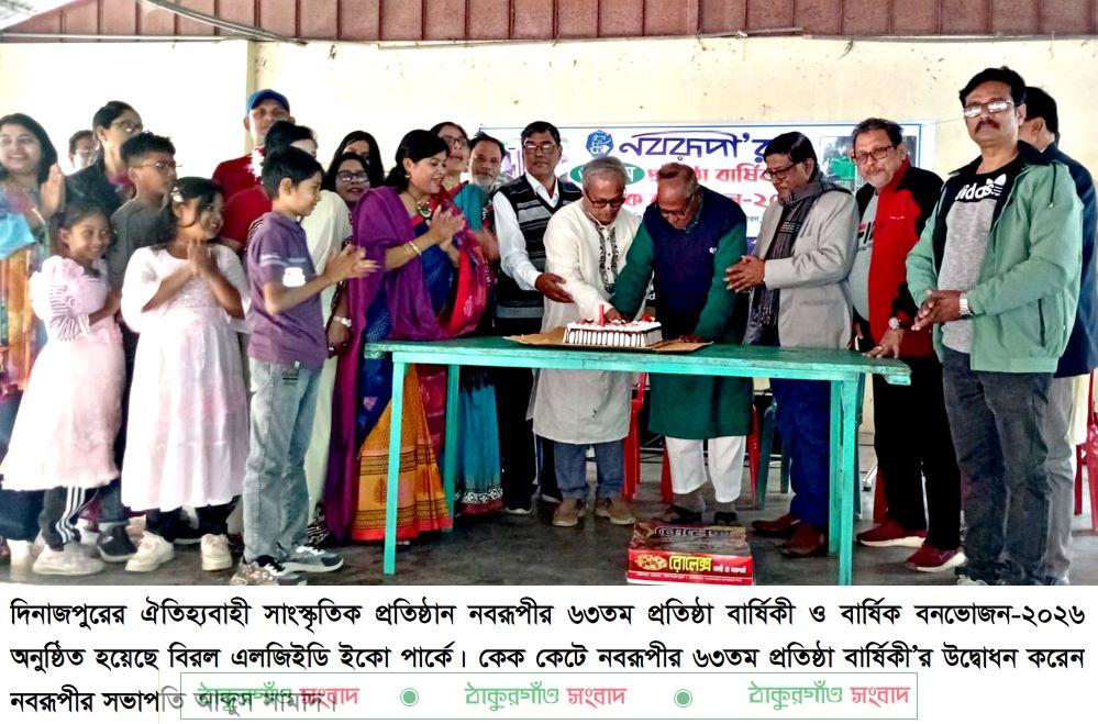 দিনাজপুরের ঐতিহ্যবাহী সাংস্কৃতিক প্রতিষ্ঠান নবরূপীর ৬৩তম প্রতিষ্ঠা বার্ষিকী ও বার্ষিক বনভোজন-২০২৬ অনুষ্ঠিত হয়েছে বিরল এলজিইডি ইকো পার্কে।