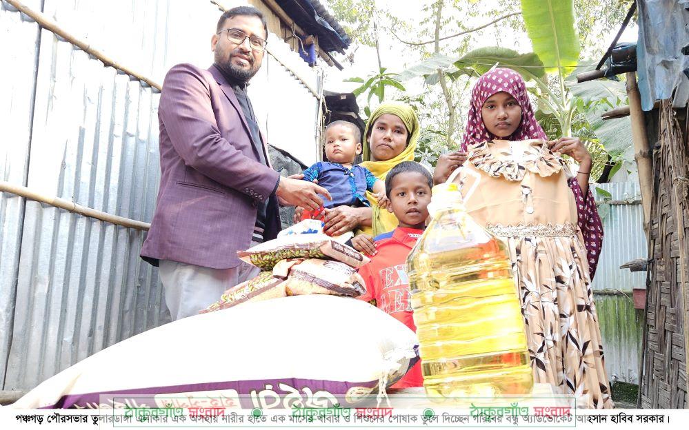 পঞ্চগড় পৌর এলাকার তুলারডাঙ্গা এলাকার অসহায় নারী তহমিনা বেগম। করতোয়া নদীর পাড়ে ভাঙাচোরা একটি ঘরে তিন সন্তান নিয়ে মানবেতর জীবনযাপন করছেন তিনি। প্রায় এক বছর আগে স্বামী রিয়াজুল ইসলাম অন্য এক নারীকে নিয়ে নিরুদ্দেশ হওয়ার পর থেকেই চরম সংকটে পড়েন তিনি। অভাবের তাড়নায় অর্ধাহারে অনাহারে দিন কাটছিল তহমিনা ও তার তিন সন্তানের। মেয়ে রুকাইয়া এবং দুই ছেলে তাহমিদ ও হোসাইন সব থাকতেও যেন এতিম।