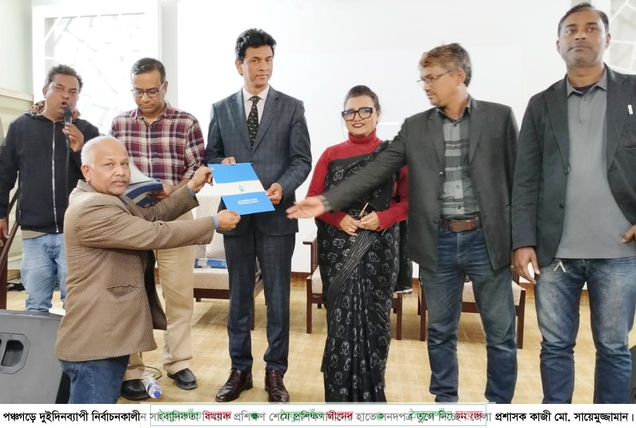 পঞ্চগড় জেলার গণমাধ্যমকর্মীদের নিয়ে নির্বাচনকালীন সাংবাদিকতা বিষয়ক দুইদিনের প্রশিক্ষণ কর্মশালা গতকাল বৃহস্পতিবার শেষ হয়েছে। পঞ্চগড় সার্কিট হাউস মিলনায়তনে ওই কর্মশালার আয়োজন করে বাংলাদেশ প্রেস ইন্সটিটিউট (পিআইবি)। বিকেলে কর্মশালার সমাপনী অনুষ্ঠানের আয়োজন করা হয়। এতে প্রধান অতিথি হিসেবে উপস্থিত থেকে অংশগ্রহণকারী প্রশিক্ষণার্থীদের হাতে সনদপত্র তুলে দেন পঞ্চগড়ের জেলা প্রশাসক কাজী মো. সায়েমুজ্জামান। এ সময় পিআইবি’র সিনিয়র প্রশিক্ষক গোলাম মোর্শেদ, পঞ্চগড় প্রেসক্লাবের সভাপতি বাংলাভিশন ও কালবেলার প্রতিনিধি মোশাররফ হোসেন, সাধারণ সম্পাদক বাংলাদেশ প্রতিদিন ও নিউজ ২৪ টিভির জেলা প্রতিনিধি সরকার হায়দার উপস্থিত ছিলেন। দুইদিন ব্যাপী কর্মশালায় নির্বাচনকালীন সাংবাদিকতা বিষয়ের বিভিন্ন সেশনে সংবাদকর্মীদের প্রশিক্ষণ প্রদান করেন এনটিভির জ্যেষ্ঠ প্রতিবেদক নিয়ামুল আযীয সাদেক, স্বাধীন মিডিয়ার সম্পাদক ও ফ্রিল্যান্স সাংবাদিক শারমীন রিনভী এবং পিআইবির সিনিয়র প্রশিক্ষক গোলাম মুর্শেদ। ওই প্রশিক্ষণ কর্মশালায় পঞ্চগড়ের ৫০ জন বিভিন্ন প্রিন্ট ও ইলেকট্রনিক মিডিয়ার গণমাধ্যমকর্মীরা অংশ নিচ্ছে।