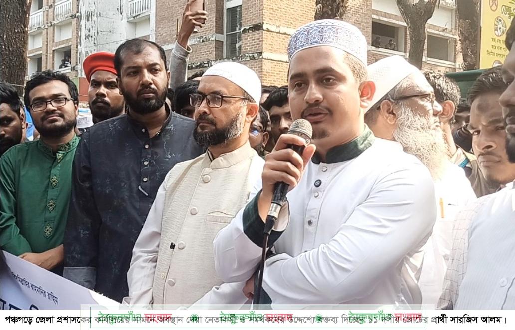 ত্রয়োদশ জাতীয় সংসদ নির্বাচনকে কেন্দ্র করে পঞ্চগড়-১ আসনে অবৈধ ব্যানার ও ফেস্টুন অপসারণের দাবিসহ পাঁচ দফা দাবিতে ১১ দলীয় জোটের নেতাকর্মী ও সমথর্কদের পঞ্চগড় রিটার্নিং কর্মকর্তার কার্যালয় চত্বরে অবস্থান কর্মসূচি প্রত্যাহার করা হয়েছে। দাবির প্রেক্ষিতে গতকাল বৃহস্পতিবার দুপুরে রিটার্নিং কর্মকর্তা ও জেলা প্রশাসক কাজী মো. সায়েমুজ্জামানের সাথে জরুরী বৈঠকে বসেন পঞ্চগড়-১ আসনের ১১ দলীয় জোটের শাপলা কলির প্রার্থী সারজিস আলম ও জেলা জামায়াতের আমির মাওলানা ইকবাল হোসাইন। সেখান থেকে বের হয়ে দাবিগুলো জরুরী বাস্তবায়নের আহ্বান জানিয়ে অবস্থান কর্মসূচি প্রত্যাহারের ঘোষণা দেন তারা।