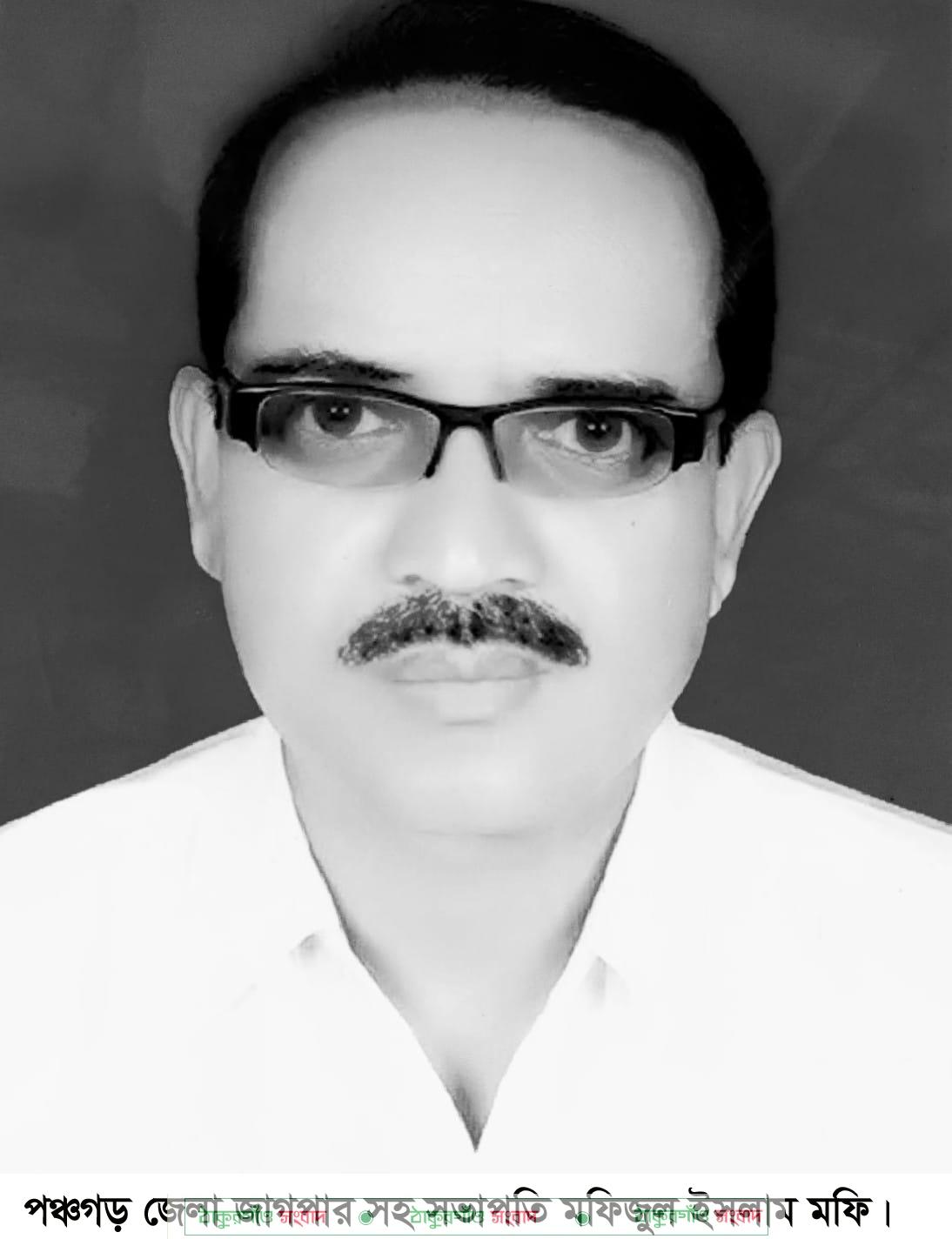 পঞ্চগড় জেলা জাগপা’ সহ-সভাপতি ও পঞ্চগড় বাজার বণিক সমিতির সহ-সাধারণ সম্পাদক বিশিষ্ট ব্যবসায়ী মফিজুল ইসলাম মফি ইন্তেকাল করেছেন। সোমবার দিবাগত রাত ৩টার দিকে হৃদরোগে আক্রান্ত হয়ে পঞ্চগড় আধুনিক সদর হাসপাতালে শেষ নিঃশ্বাস ত্যাগ করেন (ইন্না লিল্লাহি ওয়া ইন্না ইলাহি রাজিউন)। গতকাল মঙ্গলবার সন্ধ্যায় মরহুমের জানাজা নামাজ শেষে জেলা শহরের ধাক্কামারাস্থ ডিস্টিলারীজ সংলগ্ন কবরস্থানে দাফন করা হয়। তার মৃত্যুতে গভীর শোক প্রকাশ করেছে জাগপার সভাপতি ব্যারিস্টরার তাসমিয়া প্রধান এবং সহ সভাপতি ও দলীয় মূখপত্র রাশেদ প্রধান, জেলা জাগপার সভাপতি বীর মুক্তিযোদ্ধা আনছার আলী, সাধারণ সম্পাদক শাহরিয়ার আলম বিপ্লব, সহ সভাপতি শামুসজ্জামান নয়ন মাস্টার ও সাংগঠনিক সম্পাদক কামাল হোসেন পাটোয়ারী।