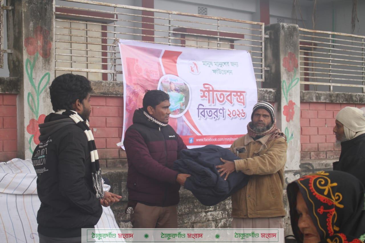 পীরগঞ্জ ( ঠাকুরগাঁও) প্রতিনিধি ঃঠাকুরগাঁওয়ের পীরগঞ্জ উপজেলায় তীব্র শীতের মধ্যে অসহায় ও দুস্থ মানুষের পাশে দাঁড়িয়েছে স্বেচ্ছাসেবী সংগঠন মানুষ মানুষের জন্য ফাউন্ডেশন। সংগঠনটির উদ্যোগে উপজেলার পৌরশহর শান্তিবাগ মাঠে শীতার্ত মানুষের মাঝে কম্বল বিতরণ করা হয়েছে।