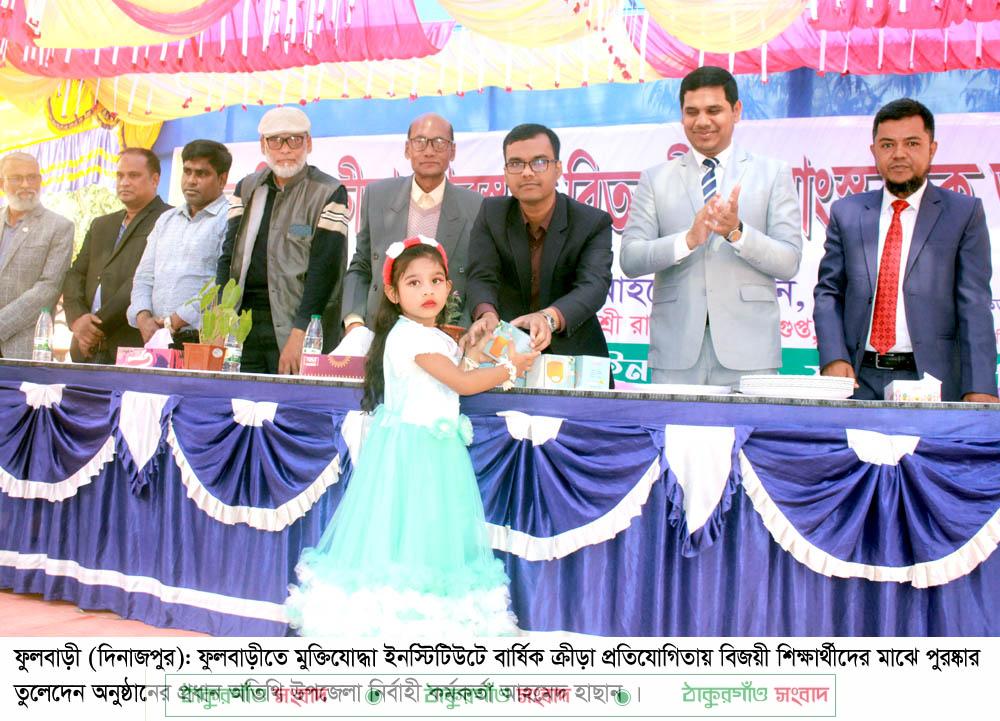 ফুলবাড়ী (দিনাজপুর) প্রতিনিধি॥দিনাজপুরের ফুলবাড়ীতে মুক্তিযোদ্ধা ইনস্টিটিউটে বার্ষিক ক্রীড়া প্রতিযোগিতার পুরষ্কার বিতরণী ও সাংস্কৃতিক অনুষ্ঠান অনুষ্ঠিত হয়েছে।
