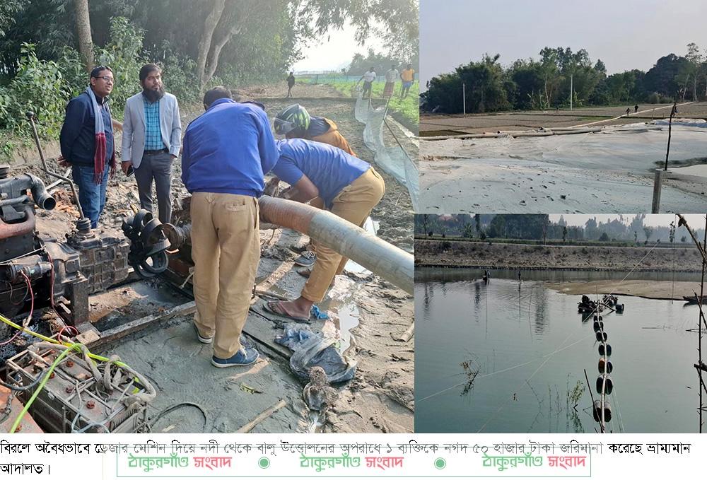 বিরল (দিনাজপুর) প্রতিনিধি। দিনাজপুরের বিরলে ড্রেজার মেশিন দিয়ে নদী থেকে অবৈধভাবে বালু উত্তোলনের অপরাধে ১ ব্যক্তিকে নগদ ৫০ হাজার টাকা জরিমানা করেছে ভ্রাম্যমান আদালত।
