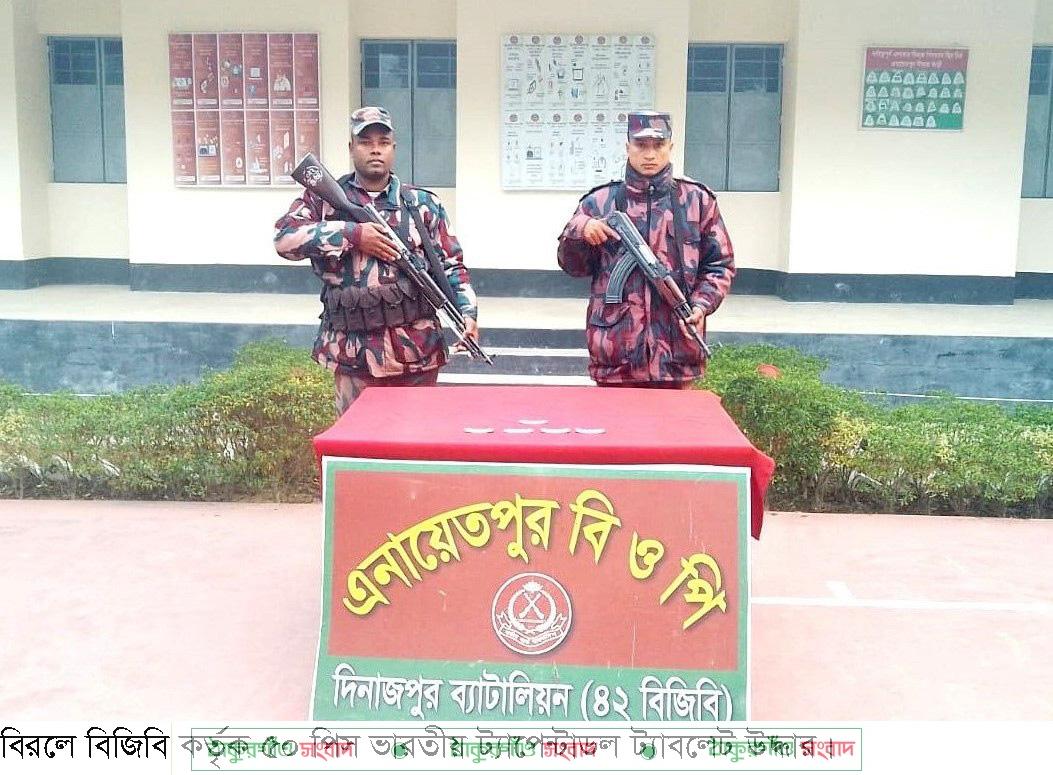 গত মঙ্গলবার দিবাগত রাত রাত প্রায় পৌনে ৯ টার দিকে উপজেলার এনায়েতপুর সীমান্ত পিলার ৩২১/১২-এস থেকে আনুমানিক ০২ কিঃমিঃ বাংলাদেশের অভ্যন্তরে কৈইকুরি শালবাগান এলাকায় বিজিবি সদস্যরা তল্লাশী চালিয়ে মালিকবিহীন অবস্থায় ৫০ পিস ভারতীয় ট্যাপেন্টাডল ট্যাবলেট উদ্ধার করতে সক্ষম হয়।