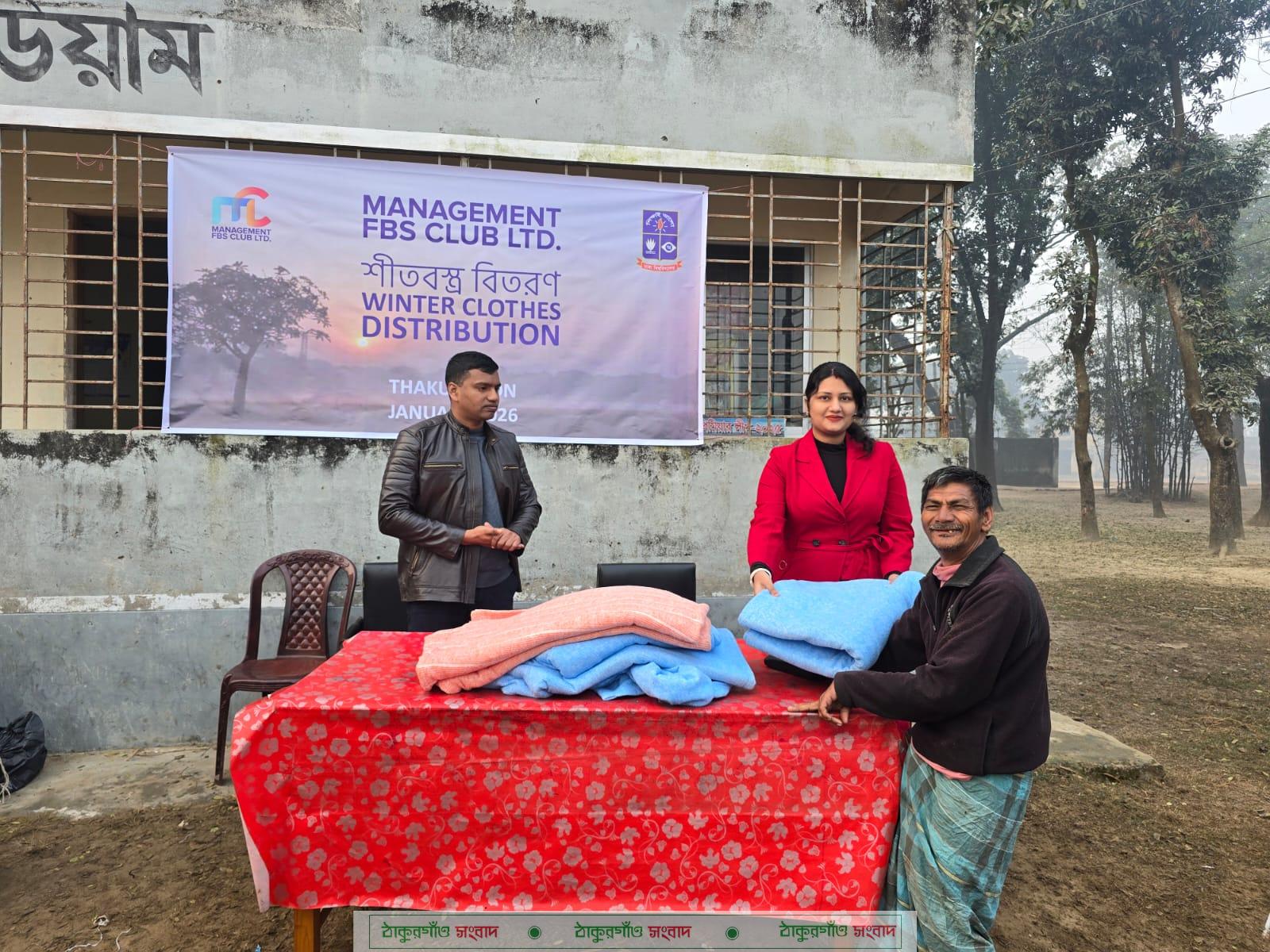 শীত একটি অসহায় মানুষের জন্য কঠিন পরীক্ষা, ফুটপাতে মানুষের জন্য যেন মৃত্যুর সামিল। হাড়কাপানো এই শীতে উত্তরবঙ্গের নিম্নআয়ের মানুষের শীতের কষ্ট সামান্য ভাগ করে নিতে উষ্ণতা ও ভালবাসার পরশ পৌঁছে দিতে ঢাকা বিশ্ববিদ্যালয়ের ম্যানেজমেন্ট বিভাগের ম্যানেজমেন্ট এফবিএস ক্লাব লিঃ কর্তৃক স্বল্প পরিসরে কম্বল বিতরণের আয়োজন করেন। শতাধিক মানুষের মাঝে কম্বল বিতরণ করেন সহকারি পুলিশ সুপার স্নেহাশীষ কুমার দাস। যা শীতার্তদের কাছে এক টুকরো উষ্ণতা ও ভালোবাসার প্রতীক।