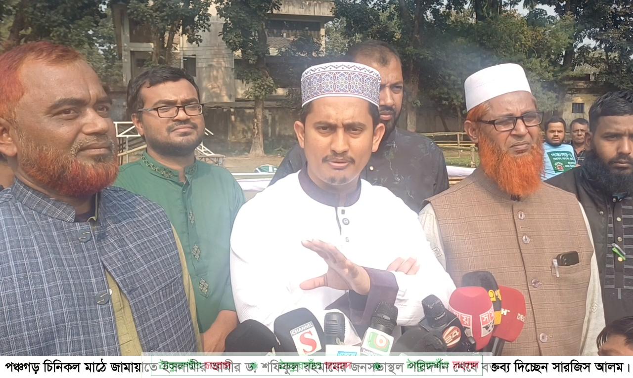 জামায়াতে ইসলামীর নেতৃত্বাধীন ১০ দলীয় নির্বাচনি জোটের শরিক দল জাতীয় নাগরিক পার্টি (এনসিপি)’র মনোনীত পঞ্চগড়-১ আসনের প্রার্থী ও জাতীয় নাগরিক পার্টির (এনসিপি) উত্তরাঞ্চলের মুখ্য সংগঠক সারজিস আলম বলেছেন, একটি বড় রাজনৈতিক দল হিসেবে জামায়াতে ইসলামীর সম্মানিত আমির নিজে পঞ্চগড়ে এসে জনসভার মাধ্যমে ১০ দলীয় জোটের নির্বাচনী প্রচারণা আনুষ্ঠানিকভাবে শুরু করবেন। মানুষের মধ্যে যে পরিবর্তন ও জাগরণের ঢেউ তৈরি হয়েছে, তা ইনশাআল্লাহ আগামী ১২ ফেব্রুয়ারির বিজয় পর্যন্ত পৌঁছাবে। শুধু পঞ্চগড় নয়, সারা দেশের মানুষই এখন পরিবর্তনের পক্ষে ঐক্যবদ্ধ। তিনি বলেন, দীর্ঘদিন ধরে যারা পুরনো ও ব্যর্থ ব্যবস্থার মাধ্যমে মানুষকে বারবার প্রতিশ্রুতি দিয়ে প্রতারিত করেছে, জনগণ এবার তাদের প্রত্যাখ্যান করবে। নির্বাচনের সময় ছাড়া যাদের মাঠে দেখা যায় না, যারা সাধারণ মানুষের দুঃখ-কষ্টের সময় পাশে থাকে না, তাদের আর গ্রহণ করবে না জনগণ। তিনি পঞ্চগড় চিনিকল মাঠে জেলা জামায়াতে ইসলামী আয়োজিত জনসভাস্থল পরিদর্শন শেষে গতকাল বৃহস্পতিবার দুপুরে এসব কথা বলেন।