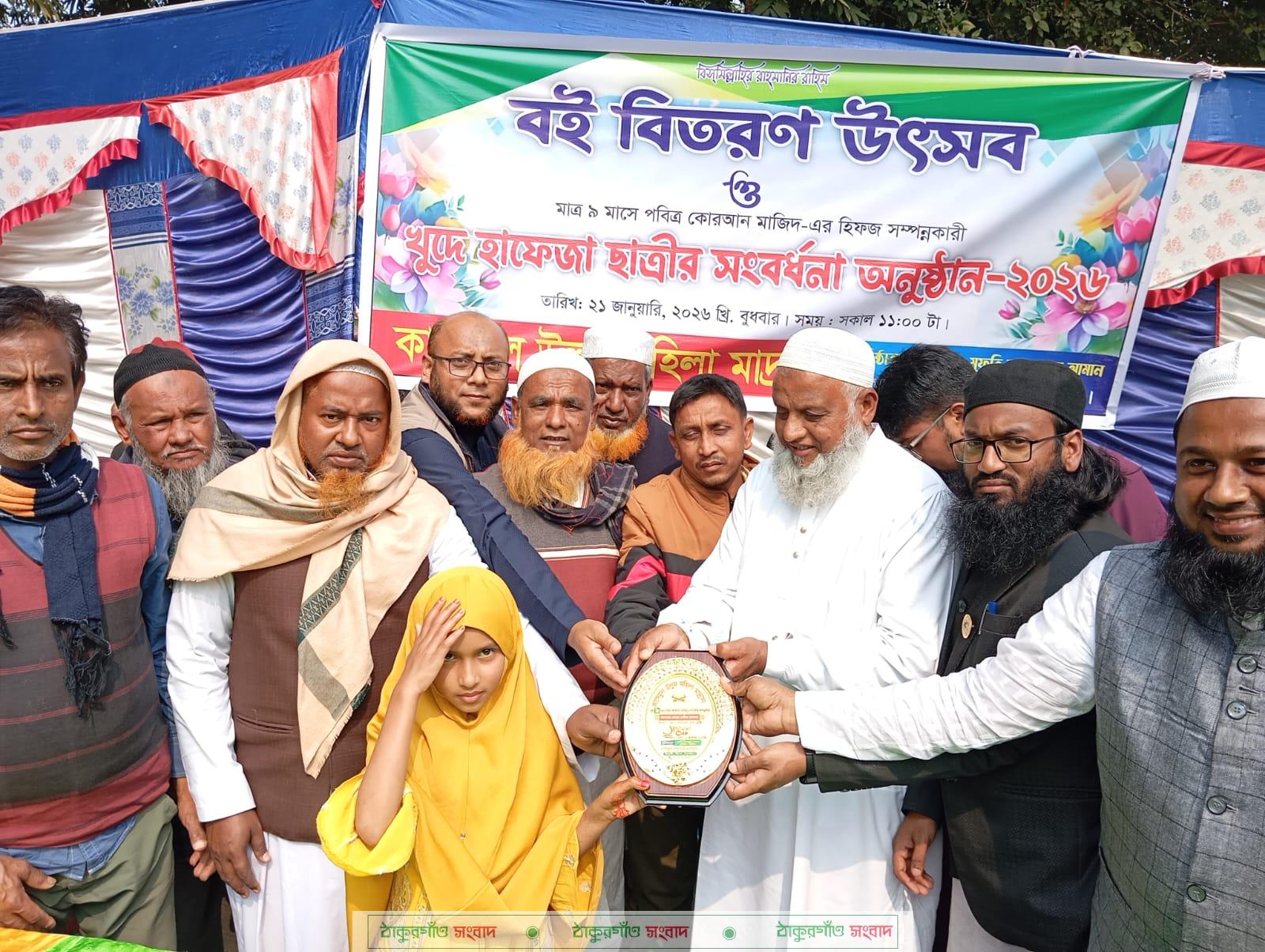 মাত্র ৯ বছর বয়সে বিস্ময়কর মেধার স্বাক্ষর রাখলেন হাফেজা মোছা. হাবীবা আক্তার। মাত্র ৯ মাসে পবিত্র কুরআন মজিদ মুখস্থ করে (হিফজ সম্পন্ন করে) তিনি অনন্য দৃষ্টান্ত স্থাপন করেছেন। তার এই অসামান্য কৃতিত্বে বুধবার (আজ) সকালে তাকে বিশেষ সম্মাননা প্রদান করা হয়।