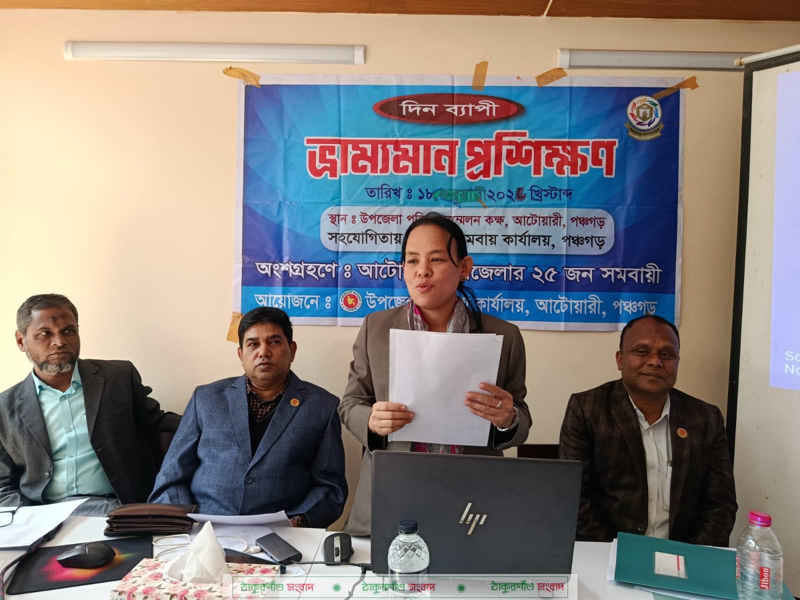 আটোয়ারী (পঞ্চগড়) প্রতিনিধি ঃ পঞ্চগড়ের আটোয়ারীতে সমবায়ীদের নিয়ে দিনব্যাপি ভ্রাম্যমান প্রশিক্ষণ অনুষ্ঠিত হয়েছে। উপজেলা সমবায় কার্যালয়ের আয়োজনে এবং জেলা সমবায় কার্যালয়ের সহযোগিতায় উপজেলার বিভিন্ন সমবায় সমিতির সদস্যবৃন্দদের নিয়ে বুধবার (১৮ ফেব্রুয়ারি) উপজেলা পরিষদ ভবনের ৫ম তলায় আইসিটি হলরুমে দিনব্যাপি ভ্রাম্যমান প্রশিক্ষণ অনুষ্ঠিত হয়। ভ্রাম্যমান প্রশিক্ষণে সমবায় সমিতির খাতাপত্র লিখন ও হিসাব সংরক্ষণ সম্পর্কে আইন-বিধি অনুযায়ী সমবায় সমিতির জন্য ব্যবহার্য খাতাপত্রের বিবরণ এবং সংশ্লিষ্ট ধারা ও বিধির আলোচনা করেন প্রধান রিসোর্স পারসন ও উপজেলা নির্বাহী অফিসার রিপামনি দেবী। অন্যান্যদের মধ্যে রিসোর্স পারসন হিসেবে উপস্থিত ছিলেন জেলা সমবায় অফিসার পঞ্চগড় মোঃ মোস্তফা কামাল, উপজেলা সমবায় অফিসার তেঁতুলিয়া মোঃ মামুন কবীর, জেলা সমবায় কার্যালয়ের পরিদর্শক হীতেন্দ্র নাথ বর্মন। কোর্স পরিচালক হিসেবে উপস্থিত ছিলেন জেলা সমবায় অফিসের প্রশিক্ষক রেনেসা খানম, সহকারী কোর্স পরিচালক হিসেবে ছিলেন উপজেলা সমবায় অফিসের সহকারী পরিদর্শক পরিতোষ চন্দ্র রায়। প্রশিক্ষণে রাজস্ব খাতের আওতায় সমবায় সমিতি আইন ও বিধিমালা সম্পর্কে ধারনা, সমবায় ভিত্তিক উন্নয়নমূলক কর্মকান্ডের বিস্তৃতকরণ ও সমবায়ীদের দক্ষ জনগোষ্ঠী হিসেবে গড়ে তোলা বিষয়ে বিস্তারিত আলোচনা করা হয়। উপজেলার বিভিন্ন সমবায় সমিতির ২৫ জন সমবায়ী প্রশিক্ষণে অংশগ্রহণ করেন। অংশগ্রহণকারীরা সমবায় কার্যক্রমের আধুনিকায়ন, সুশাসন ও আর্থ-সামাজিক উন্নয়নে সমবায়ের ভুমিকা নিয়ে প্রশিক্ষণ গ্রহণ করেন। এসময় প্রশিক্ষণার্থীদের উদ্দেশ্যে ইউএনও রিপামনি দেবী বলেন, সমবায় আন্দোলনকে শক্তিশালী করতে হলে দক্ষ মানবসম্পদ গঠন জরুরী। এ ধরনের প্রশিক্ষণই মাঠ পর্যায়ে ইতিবাচক পরিবর্তন আনবে।