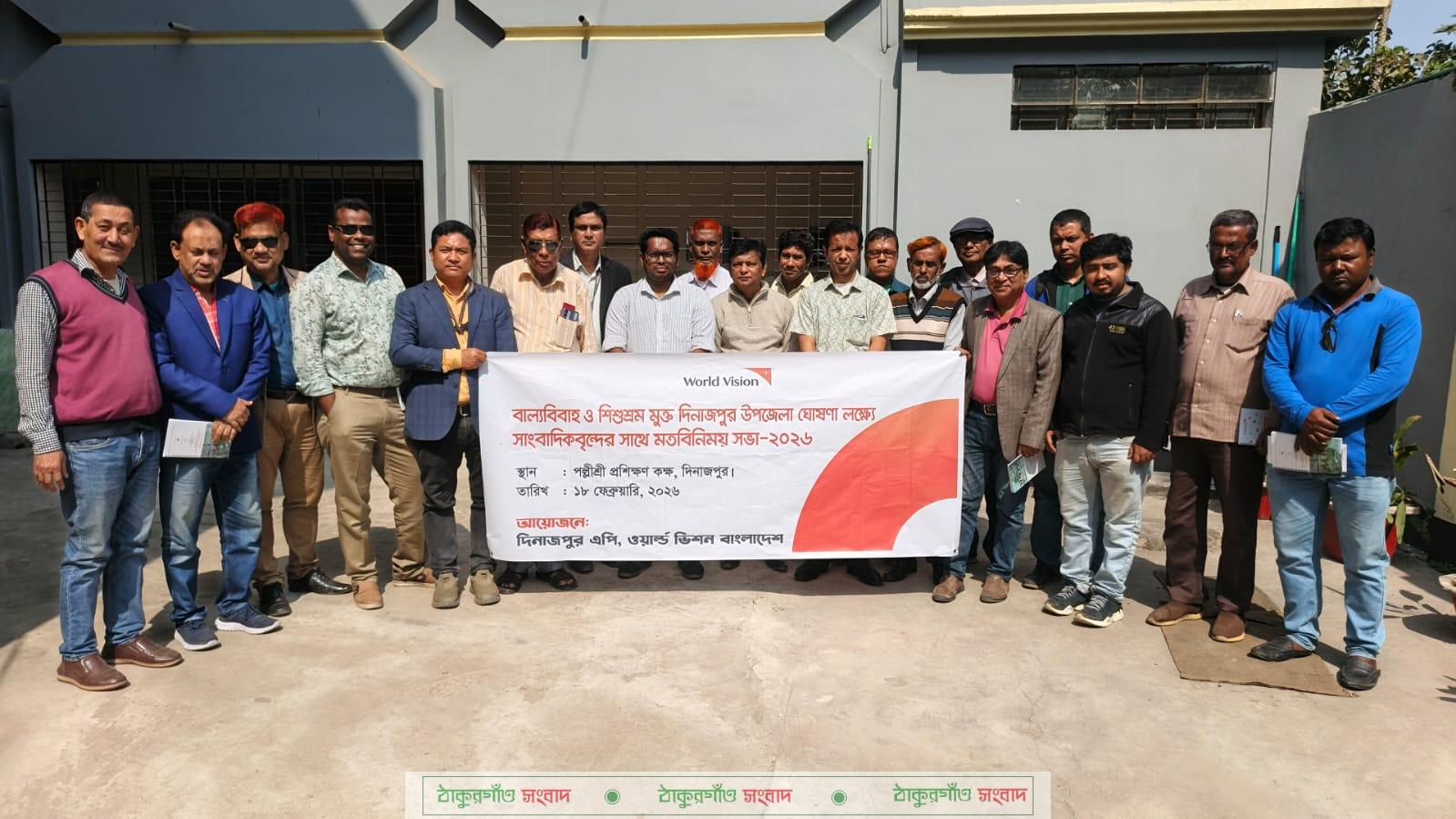 বুধবার বালুবাড়ি পল্লীশ্রী মিলনায়তনে দিনাজপুর এরিয়া প্রোগ্রাম, ওয়ার্ল্ড ভিশন বাংলাদেশ এর আয়োজনে বাল্যবিবাহ ও শিশু শ্রম মুক্ত দিনাজপুর উপজেলা ঘোষণা করার লক্ষে দিনাজপুরের সাংবাদিকদের সাথে মত বিনিময় সভা অনুষ্ঠিত হয়েছে।