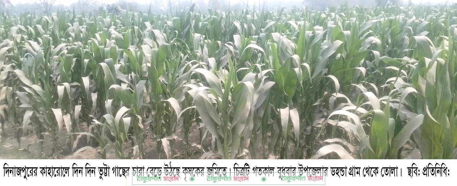 কাহারোল (দিনাজপুর) প্রতিনিধি ঃ দিনাজপুরের কাহারোলে ভুট্টা চাষাবাদের লক্ষ্য মাত্রা নির্ধারণ করা হয়েছে ১১ হাজার ৬২০ হেক্টর জমিতে। অত্র কাহারোল উপজেলা ৬টি ইউনিয়নে এবার ভূট্রা চাষে লক্ষ্যমাত্রা নির্ধারণ ও এবছর ভুট্টার বাম্পার ফলনের সম্ভাবনা রয়েছে বলে মনে করছেন ভুট্টা চাষীরা। তবে শীর্তের প্রকোপ কম থাকা সঠিক সময়ে বৃষ্টি রোদ্রের প্রখরতা না থাকায় ভূট্রার ফলন ভালো হওয়ার আশা করছেন কৃষকরা। আবহাওয়া অনুকুলে থাকায় এবছর ভূট্রা চাষে ঝুঁকে পড়েছেন উপজেলার অধিকাংশ কৃষকরা। এবার ভূট্টার বাম্পার ফলনে আশাবাদী তারা। অনুকুল আবহওয়া ও আধুনিক কৃষি প্রযুক্তিতে আগ্রহ সৃষ্টি হওয়ায় সল্প খরচে যথাসময়ে কৃষকেরা এবছর ভূট্টার বাম্পার ফলন পাবেন বলে আশা করছেন চাষীরা। ভূট্টা চাষাবাদের খরচ কম অথচ ফলন ও দাম বেশী পাওয়ায় গত বছরের মত এবছরও ভূট্টা চাষে কৃষকেরা আগ্রহ দেখাচ্ছেন। গত বছর বাজারে ভূট্টার দাম বেশী পাওয়ায় বিভিন্ন এলাকায় কৃষকরা ভূট্টা চাষ বেশী হয়েছে। তবে গতবছরের চেয়ে এবছর কিছুটা কম ভূট্টা চাষাবাদ করা হয়েছে। ভূট্টা চাষাবাদের মাধ্যমে পাল্টে যাচ্ছে এই উপজেলার মানুষের জীবন যাত্রার মান। উপজেলা কৃষিবিভাগ সূত্রে জানা গেছে, চলতি মৌসমে উপজেলায় ১১ হাজার ৬২০ হেক্টর জমিতে ভূট্টা চাষাবাদে লক্ষ্যমাত্র নির্ধারণ করা হয়েছে। আলু উত্তোলনের পর লক্ষ্যমাত্রা ছাড়িয়ে যাবে বলে কৃষি বিভাগ আশা করছেন। গত বছর প্রতি হেক্টর জমিতে উৎপাদনের লক্ষ্য নির্ধারণ করা হয়েছিল ১ লক্ষ ৩৯ হাজার ৪৪০ মেট্রিক টন ভূট্টা। উপজেলার রামচন্দ্রপুর ইউনিয়নের কাজি কাটনা গ্রামের কৃষক মোঃ সাইদুল ইসলাম জানান, আমাদের এখানে ধানের চাষ বেশী । তবে ভূট্টা চাষাবাদে লাভজনক হওয়ায় এবছর নতুন করে ভূট্টা চাষ শুরু করেছি। একই এলাকার আরেক কৃষক মোঃ শরীফ উদ্দীন বলেন, ভূট্টা চাষাবাদ করে কৃষকরা লাভবান হয়, তাই ভূট্টা চাষাবাদের আগ্রহ দিন দিন বৃদ্ধি পাচ্ছে এই উপজেলায়। এছাড়াও উপজেলার বিভিন্ন এলাকার কৃষকদের সঙ্গে কথা বলে জানা গেছে, ধান চাষে খরচ বেশী লাভ কম হওয়ায় আমরা ভূট্টা চাষাবাদে আগ্রহ হয়েছি। তবে, সার, কীটনাশকের মুল্য যদি সহনীয় পর্যায়ে থাকতো তাহলে লাভ আরও বেশী হতো। উপজেলা কৃষি অফিসার কৃষিবিদ মোঃ জাহিদুর রহমান জানান, ভূট্টা সহ নানা ধরনের ফসল উৎপাদনে আমরা কৃষকদের আধুনিক কৃষি প্রযুক্তি ব্যবহারে উদ্বুদ্ধ করছি। কৃষকেরা যেন সহজে কৃষি উপকরণ পায় সেই জন্য বীজ, সার, কীটনাশক ও জ্বালানি তেলের জন্য স্বার্বক্ষনিক মনিটরিং করে আসছি। এবছর বাম্পার ফলনের সম্ভবনা রয়েছে ভূট্টার। উপজেলায় ভূট্টা চাষাবাদের মাধ্যমে কৃষকরা কৃষিতে বিপ্লব ঘটানোর চেষ্টা করছে।