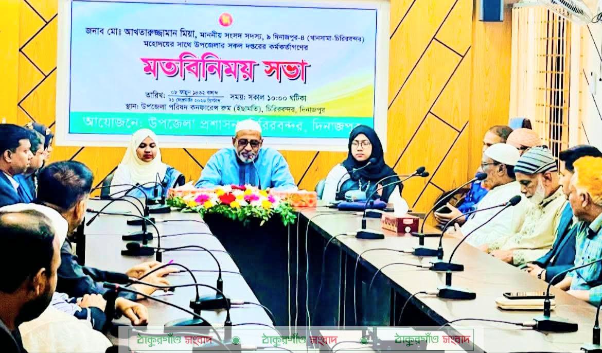 চিরিরবন্দর (দিনাজপুর) প্রতিনিধি: দিনাজপুর-৪ (চিরিরবন্দর-খানসামা) আসনের নবনির্বাচিত সংসদ সদস্য আলহাজ্ব মো. আখতারুজ্জামান মিয়ার সঙ্গে উপজেলা পর্যায়ের কর্মকর্তাদের এক মতবিনিময় সভা অনুষ্ঠিত হয়েছে। শনিবার সকালে উপজেলা প্রশাসনের আয়োজনে পরিষদের সভাকক্ষে এ সভাটি অনুষ্ঠিত হয়।