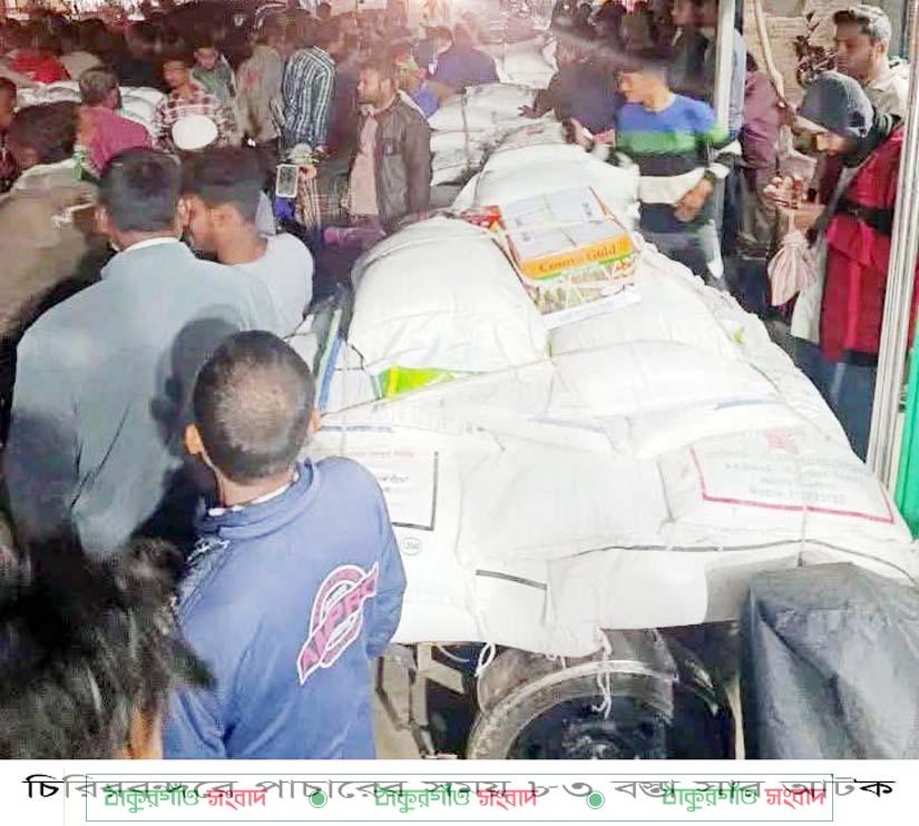 চিরিরবন্দর (দিনাজপুর) প্রতিনিধি:দিনাজপুরের চিরিরবন্দরে সার পাচার করে অন্যত্র নিয়ে যাওয়ার সময় স্থানীয় জনতা ৮৩ বস্তা সার আটক করে দিনাজপুর-গোবিন্দগঞ্জ মহাসড়ক অবরোধ করে। এ ঘটনা জানতে পেরে ভ্রাম্যমাণ আদালতের নির্বাহী ম্যাজিষ্ট্রেট ও উপজেলা নির্বাহী অফিসার ঘটনাস্থলে পৌঁছে অভিযুক্ত সার ব্যবসায়ীদের হেফাজতে নিয়ে সার জব্দ এবং ব্যবসায়ীদের জরিমানা করলে জনতা অবরোধ তুলে নেয়।