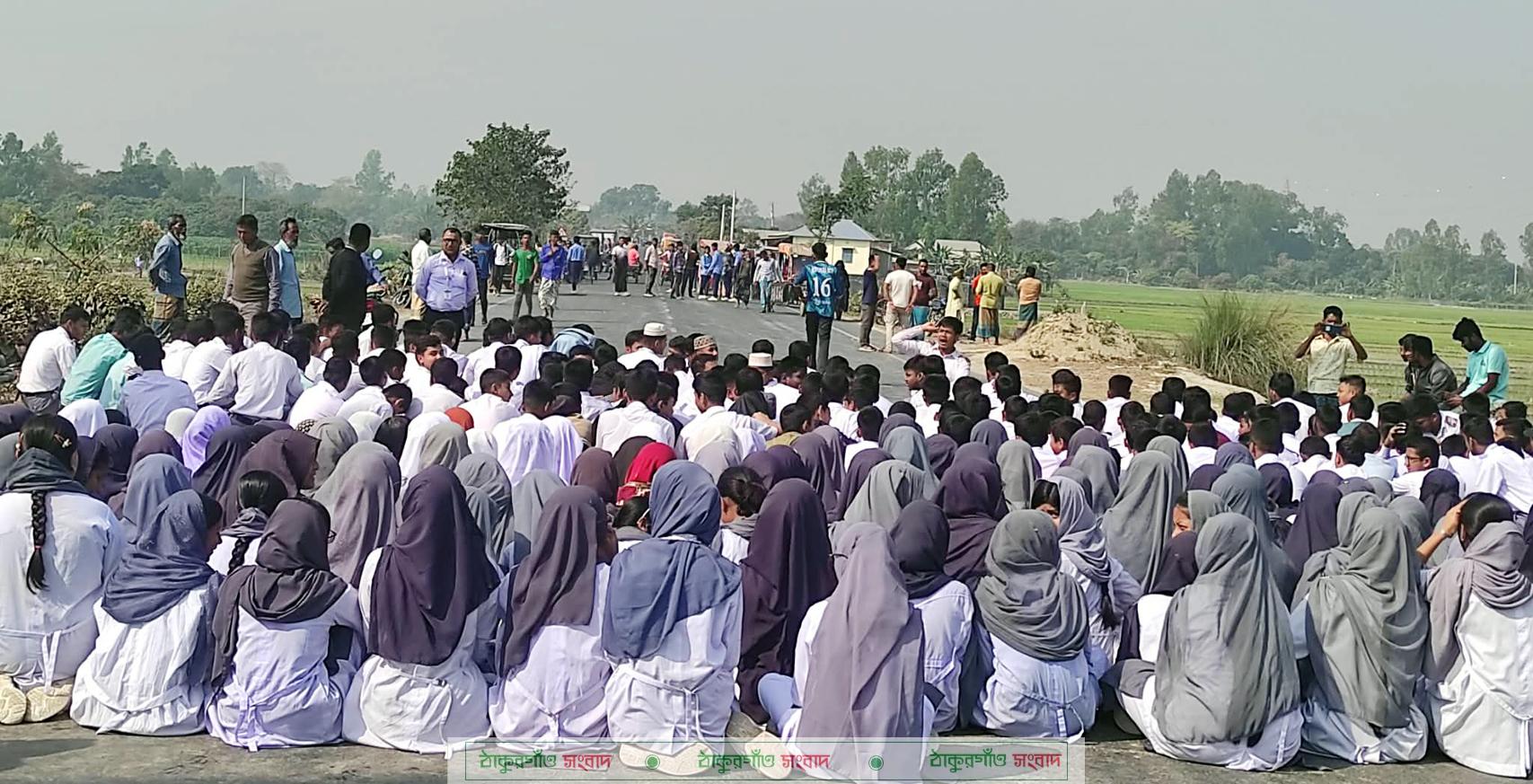 প্রত্যক্ষদর্শী সূত্রে জানা গেছে, ওই সময় দিনাজপুর থেকে ঢাকাগামী আহাদ এন্টার প্রাইজ নামে একটি যাত্রীবাহি বাস স্কুলের শিক্ষার্থীবাহী একটি রিকশাভ্যানকে চাপা দিয়ে দ্রুতগতিতে পালিয়ে যায়। এতে রিকশাভ্যানটি দুমড়ে-মুচড়ে যায় এবং ঘটনাস্থলেই আমতলী মোল্লা ইসলামিক প্রি-ক্যাডেট স্কুলের কেজি শ্রেণির ছাত্র জুনাইদ হাসান নিহত ও রাজিব রিফাত নামে আরেক ছাত্র গুরুতর আহত হয়। এসময় স্থানীয়রা গুরুতর আহত রাজিব রিফাতকে উদ্ধার করে দিনাজপুর মেডিকেল কলেজ হাসপাতালে ভর্তি করান। এ ঘটনায় বিক্ষুদ্ধ শিক্ষার্থীসহ এলাকাবাসী ঘটনার পর থেকে দুপুর ১টা পর্যন্ত দূর্ঘটনায় দোষী চালকের বিচারসহ ওই স্থানে স্প্রীড বেকার নির্মাণের দাবিতে মহাসড়ক অবরোধ করে। এতে মহাসড়কের দুইদিকে অনেক গাড়ি আটকা পড়ে এবং সড়কে চলাচলরতদের চরম দূর্ভোগ পোহাতে হয়।