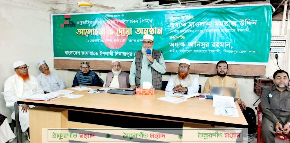 আন্তর্জাতিক মাতৃভাষা ও মহান শহীদ দিবস-২০২৬ উদযাপন উপলক্ষ্যে ২১ ফেব্রুয়ারি ২০২৬ শনিবার দুপুরে পাহাড়পুরস্থ জেলা জামায়াত অফিস কার্যালয়ে শহীদ ভাষা সৈনিকদের স্মরণে আলোচনা ও দোয়া অনুষ্ঠান অনুষ্ঠিত হয়েছে।