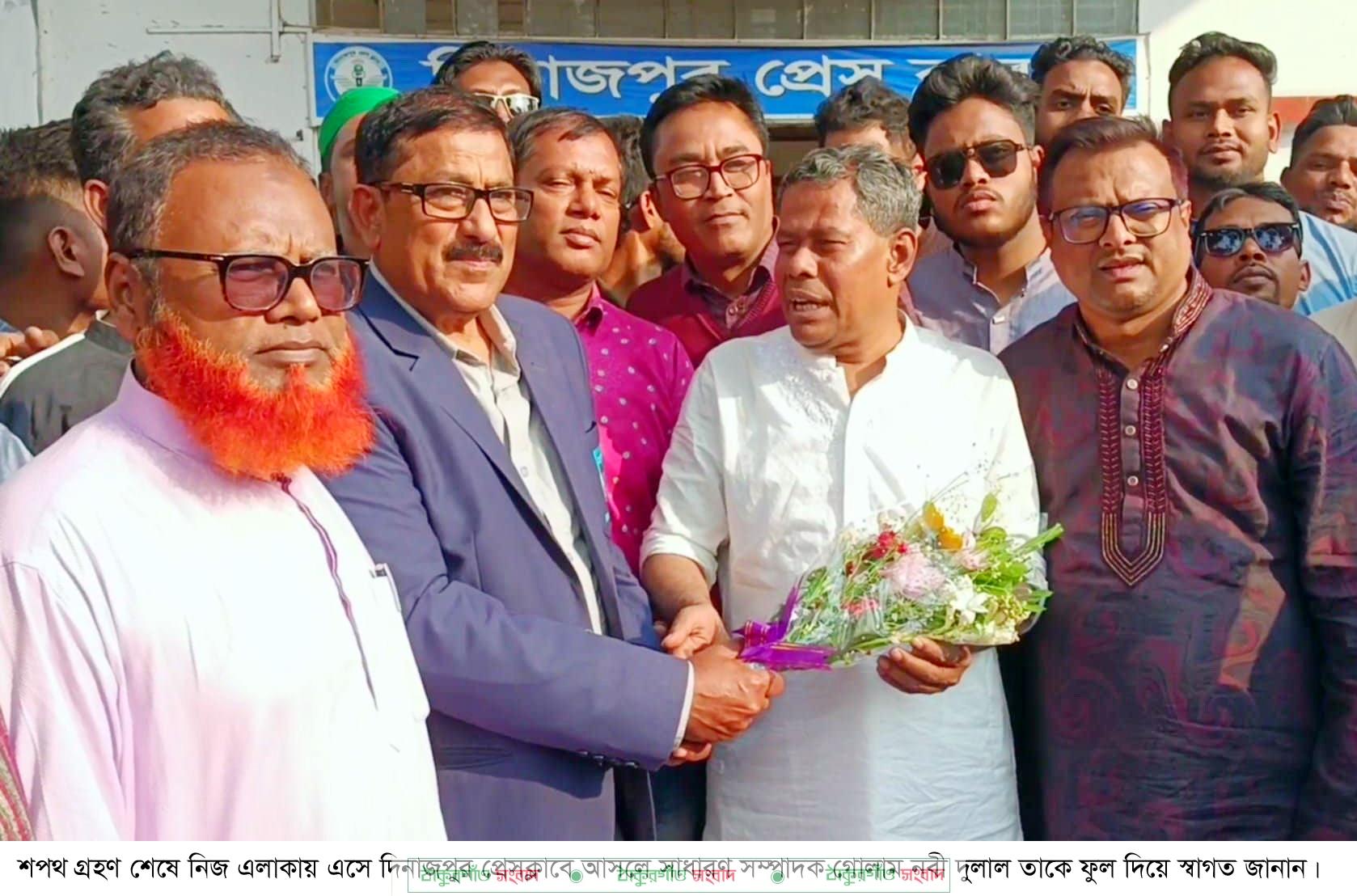 শপথ গ্রহণ শেষে নিজ এলাকায় নেতাকর্মীদের ফুলের শুভেচ্ছা সিক্ত হলেন দিনাজপুর সদর আসনের এমপি সৈয়দ জাহাঙ্গীর আলম।