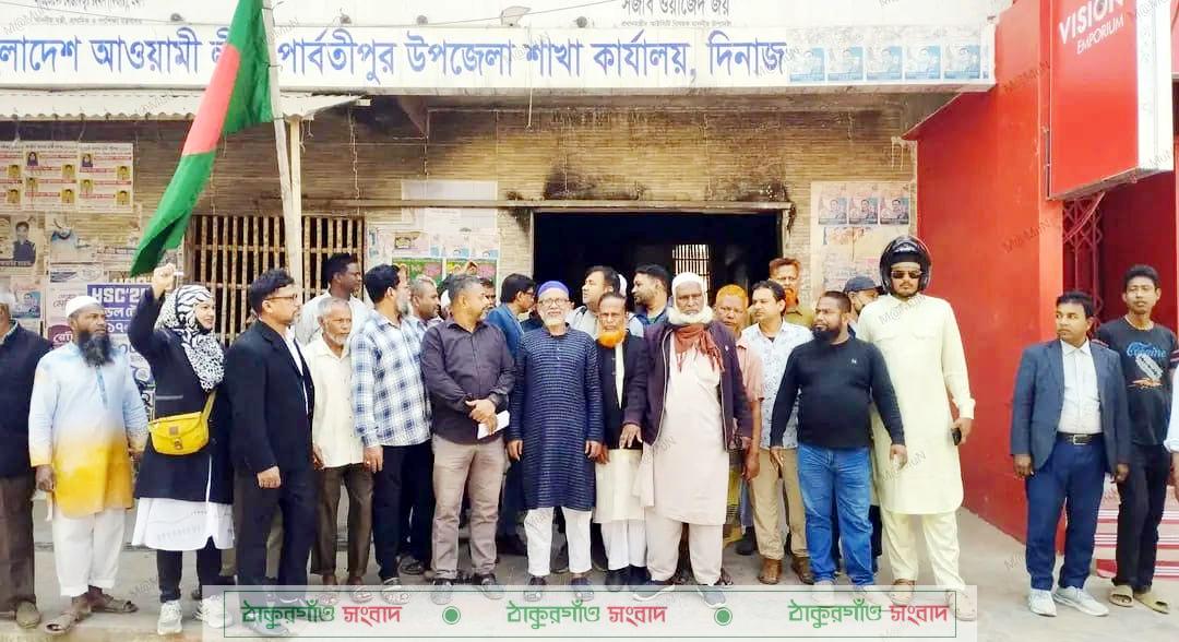 গতকাল বুধবার দিনাজপুরের পার্বতীপুর উপজেলা আওয়ামীলীগ পরিত্যাক্ত অফিসে নেতাকর্মীরা এলে এ ঘটনা ঘটেছে। আটককৃতরা হলেন, ডাঃ সাজ্জাদ হোসেন, আক্তার হোসেন, গৌরাঙ্গ কুমার রায়, বাবলু মিয়া ও তোজাম্মেল হক।