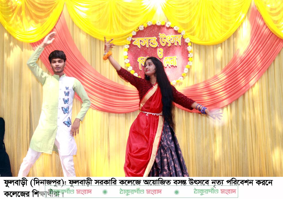ফুলবাড়ী (দিনাজপুর) প্রতিনিধি॥দিনাজপুরের ফুলবাড়ী সরকারি কলেজে দিনভর বসন্ত উৎসব ও পিঠা মেলা অনুষ্ঠিত হয়েছে। রোববার (১৫ ফেব্রুয়ারি) দিনব্যাপী কলেজের শিক্ষার্থীদের আয়োজনে অনুষ্ঠিত হয় এই বসন্ত উৎসব ও পিঠা মেলা। বসন্তের আগমনী বার্তায় ক্যাম্পাসজুড়ে ছড়িয়ে পড়ে নতুনের আনন্দ, পলাশ-শিমুলের রঙ আর উৎসবের আমেজ। নাচ, গান, হাসি আর আড্ডায় তারুণ্যের উচ্ছ্বাসে মুখরিত হয়ে উঠে কলেজ প্রাঙ্গণ।