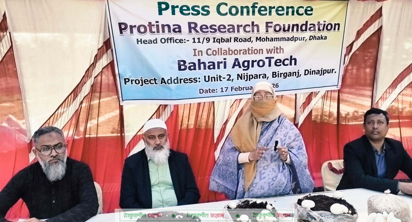 মঙ্গলবার (১৭ ফেব্রুয়ারি ২০২৬) দুপুরে দিনাজপুরের বীরগঞ্জ উপজেলার দক্ষিণ নিজপাড়া গ্রামে নিজস্ব খামারে আয়োজিত এক সংবাদ সম্মেলনে এ তথ্য জানান প্রোটিনা রিসার্চ ফাউন্ডেশনের চেয়ারম্যান মাসুদা ইসলাম।