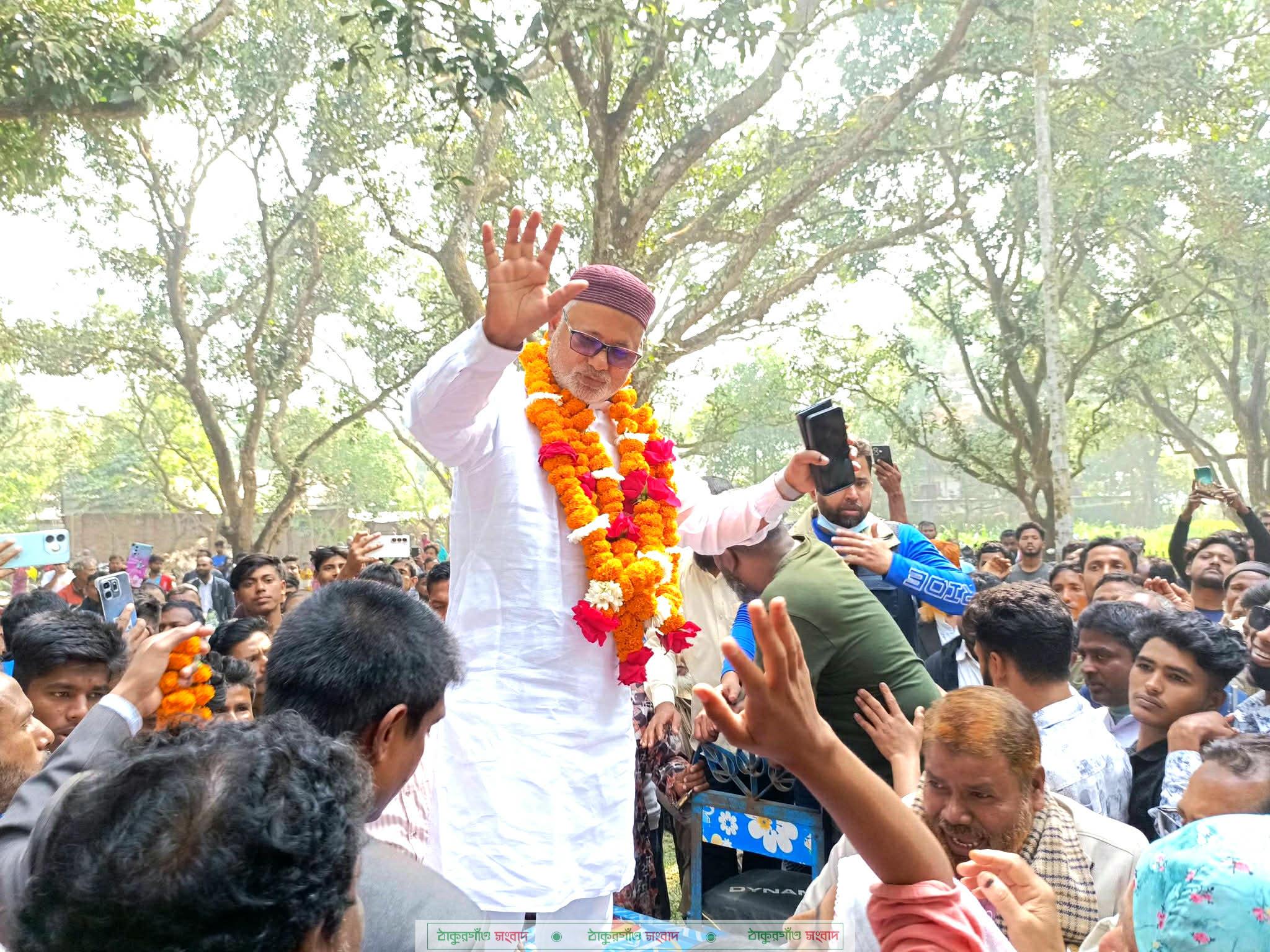 শুক্রবার (১৩ ফেব্রুয়ারী ) সন্ধ্যায় নির্বাচনে বিজয় লাভের পর বীরগঞ্জ উপজেলার প্রধান নির্বাচনী কার্যালয়ে পৌঁছালে দলীয় নেতাকর্মী ও সর্বস্তরের জনগণ তাকে ফুলেল শুভেচ্ছা ও উষ্ণ অভ্যর্থনা জানান। হাজার হাজার মানুষের উপচে পড়া ভিড়ে কার্যালয় ও আশপাশের এলাকা মুখর হয়ে ওঠে আনন্দ-উল্লাসে।