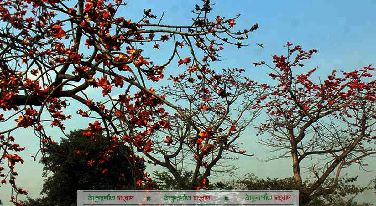 এরপরেও দেখা মিলবে এখন দিনাজপুর থেকে বীরগঞ্জ মহাসড়কের ২৮ কিলোমিটার রাস্তার দুই পার্শে রক্তিম রঙে রঙিন হয়ে উঠেছে শিমুল গাছের ফুল। এই মহাসড়কের বিভিন্ন গাছের ফাঁকে ফাঁকে শতাধিক এই শিমুল গাছ রয়েছে। শুধু ফুল আর ফুল, পাতা নেই, ফুটন্ত এ ফুল যেন দৃৃষ্টি কেড়ে নেয় সবার মন। পাখিরা উড়ে এসে বসছে লাল শিমুলের ডগায়। ঝড়ে পড়া শিমুলের লাল গালিচার রূপ দেখা যায় শিমুলতলায়। মোহনীয় রূপে প্রকৃতিকে রাঙিয়েছে শিমুল। যা পথচারীসহ বিভিন্ন যানবাহনের যাত্রীদের দৃষ্টি কাড়ছে।