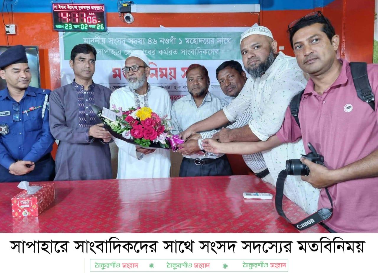 সাপাহার (নওগাঁ) প্রতিনিধি: নওগাঁর সাপাহার প্রেসক্লাবের কর্মরত সাংবাদিকদের সাথে নবাগত সংসদ সদস্য মো: মোস্তাফিজুর রহমান মাননীয় সংসদ সদস্য ৪৬,নওগাঁ-১ এর মতবিনিময় সভা অনুষ্ঠিত হয়েছে।