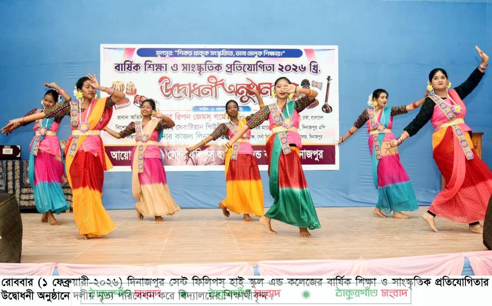 ‘‘শিকড় থাকুক সংস্কৃতিতে, ডানা মেলুক শিক্ষায়’’ এই মূলসুরকে সামনে রেখে দিনাজপুর সেন্ট ফিলিপস্ হাই স্কুল এন্ড কলেজের ২ দিন ব্যাপী বার্ষিক শিক্ষা ও সাংস্কৃতিক প্রতিযোগিতা ২০২৬ এর উদ্বোধনী অনুষ্ঠান অনুষ্ঠিত হয়েছে।
