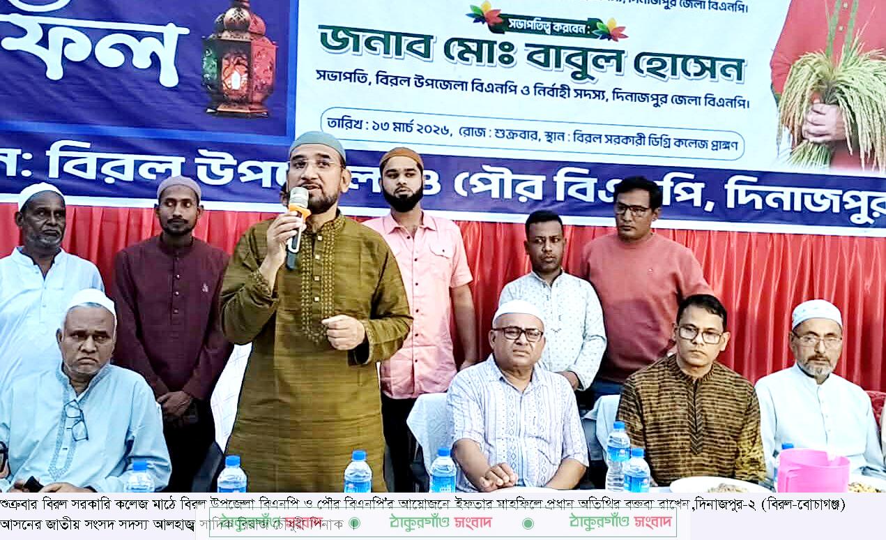শুক্রবার বিরল সরকারি কলেজ মাঠে বিরল উপজেলা বিএনপি ও পৌর বিএনপি’র আয়োজনে ইফতার মাহফিলে প্রধান অতিথির বক্তব্যে তিনি এসব কথা বলেন।
