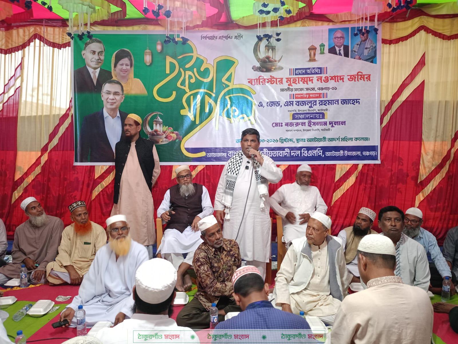 পঞ্চগড়ের আটোয়ারী উপজেলা বিএনপি’র উদ্যোগে ইফতার মাহফিল এবং দেশ ও জাতির কল্যান কামনায় বিশেষ মোনাজাত অনুষ্ঠিত হয়েছে। সোমবার (৯মার্চ) উপজেলা বিএনপি’র আয়োজনে অনুষ্ঠিত ইফতার ও মোনাজাত অনুষ্ঠানে প্রধান অতিথি হিসেবে উপস্থিত ছিলেন পঞ্চগড়-১ আসনের সাংসদ ও কেন্দ্রীয় বিএনপি’র আন্তর্জাতিক সম্পর্ক বিষয়ক সম্পাদক ব্যারিষ্টার মুহাম্মদ নওশাদ জমির। অনুষ্ঠানে সভাপতিত্ব করেন উপজেলা বিএনপি’র সভাপতি এ.জেড.এম বজলুর রহমান জাহেদ। উপজেলা বিএনপি’র সাধারণ সম্পাদক কাজী মোঃ নজরুল ইসলাম দুলালের সঞ্চালনায় অনুষ্ঠানে আরো উপস্থিত ছিলেন জেলা বিএনপি’র যুগ্ন আহবায়ক আলহাজ¦ মোঃ আব্দুল মজিদ, আটোয়ারী উপজেলা বিএনপি’র সাবেক সদস্য সচিব আলহাজ¦ কুদরত-ই-খুদা, সাবেক ইউপি চেয়ারম্যান মোঃ তৌহিদুল ইসলাম, মির্জা নুরুল ইসলাম হেলাল, মির্জাপুর ইউপি চেয়ারম্যান মোঃ আব্দুস সামাদ আজাদ, সাবেক ভাইস চেয়ারম্যান মোঃ শাহাজাহান সহ স্থানীয় বিএনপি’র সহযোগী সংগঠনের বিভিন্ন পর্যায়ের নেতাকর্মীগণ।
