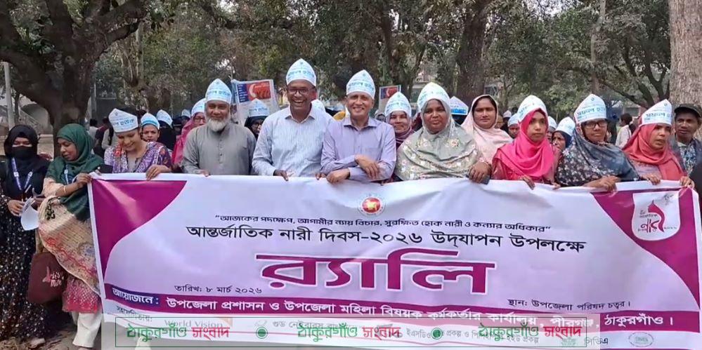 পীরগঞ্জ (ঠাকুরগাঁও) প্রতিনিধি ঃ “আজকের পদক্ষেপ, আগামীর ন্যায় বিচার সুরাক্ষত হোক নারী ও কন্যার অধিকার” প্রতিপাদ্যে আন্তর্জাতিক নারী দিবস উপলক্ষে র্যালী, আলোচনা সভা ও সাহসি নারী পুরস্কার প্রদান করা হয়েছে ঠাকুরগাঁওয়ের পীরগঞ্জে। রবিবার দুপুরে উপজেলা প্রশাসন ও মহিলা বিষয়ক অধিদপ্তরের আয়োজনে উপজেলা পরিষদ চত্বর থেকে র্যালী বের করা হয়। পরে উপজেলা পরিষদ অডিটোরিয়ামে আলোচনা সভায় বক্কব্য দেন, সাবেক উপজেলা চেয়ারম্যান ও উপজেলা বিএনপির সাধারণ সম্পাদক জিয়াউল ইসলাম জিয়া, উপজেলা সিনিয়র মৎস কর্মকর্তা আয়শা আকতার, উপজেলা মাধ্যমিক শিক্ষা অফিসার আরিফুল্লাহ, পীরগঞ্জ প্রেসক্লাবের সভাপতি জয়নাল আবেদিন বাবুল, উপজেলা তথ্য আপা মুন্নি বেগম, উপজেলা জামায়াতের ভারপ্রাপ্ত আমীর বাবলুর রশীদ, উষা মহিলা সমিতির সভানেত্রী ফেরদৌসী বেগম প্রমূখ।