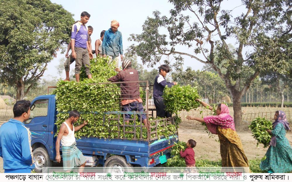 এদিকে গত বছর রেকর্ড পরিমান চা উৎপাদনের পর পঞ্চগড়সহ উত্তরাঞ্চলের কয়েকটি জেলার সমতল ভূমির নতুন চা পাতা উত্তোলনের মৌসূম শুরু হয়েছে। শীতের কারণে প্রায় দুই মাস পর এরই মধ্যে চা গাছ থেকে শুরু হয়েছে নতুন পাতা তোলার কাজ। আবারও প্রাণ চাঞ্চল্য ফিরে পেয়েছে চা বাগানগুলো। প্রতি বছর ডিসেম্বরের শেষ দিকে চা পাতা সরবরাহ না থাকায় বন্ধ হয়ে যায় চা কারখানাগুলো। প্রায় দুই মাস পর আবারও উৎপাদন শুরু হয়েছে চা কারখানাগুলোতে। তবে পুরো মৌসূম শুরু হতে চা কারখানাগুলোকে অপেক্ষা করতে হবে গোটা মার্চ মাস পর্যন্ত। তবে এবার এবার শুরুতেই সবুজ চা পাতার দামে উর্দ্ধগতি লক্ষ্য করা গেছে। বটলীফ কমিটির নির্ধারিত ২৮ টাকা দরের সবুজ চা পাতা এখন বিক্রয় হচ্ছে প্রতিকেজি ৩৪-৩৫ টাকা দরে। তবে পুরোদমে চা পাতা উত্তোলন শুরু হলে এই দর আরও নিচে নেমে যেতে পারে বলে জানিয়েছেন কারখানা কর্তৃপক্ষ।