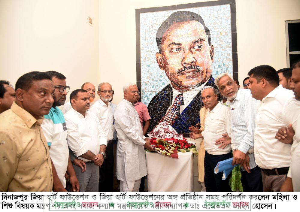 শনিবার বিকেলে দিনাজপুর জিয়া হার্ট ফাউন্ডেশন ও জিয়া হার্ট ফাউন্ডেশনের অঙ্গ প্রতিষ্ঠান সমূহ পরিদর্শন করলেন মহিলা ও শিশু বিষয়ক মন্ত্রণালয় এবং সমাজ কল্যাণ মন্ত্রণালয়ের মন্ত্রী অধ্যাপক ডাঃ এজেডএম জাহিদ হোসেন। পরিদর্শনকালে তিনি জিয়া হার্ট ফাউন্ডেশনে স্থাপিত শহীদ রাষ্ট্রপতি জিয়াউর রহমান-এর প্রতিকৃতিতে শ্রদ্ধাঞ্জলি অর্পণ করেন।